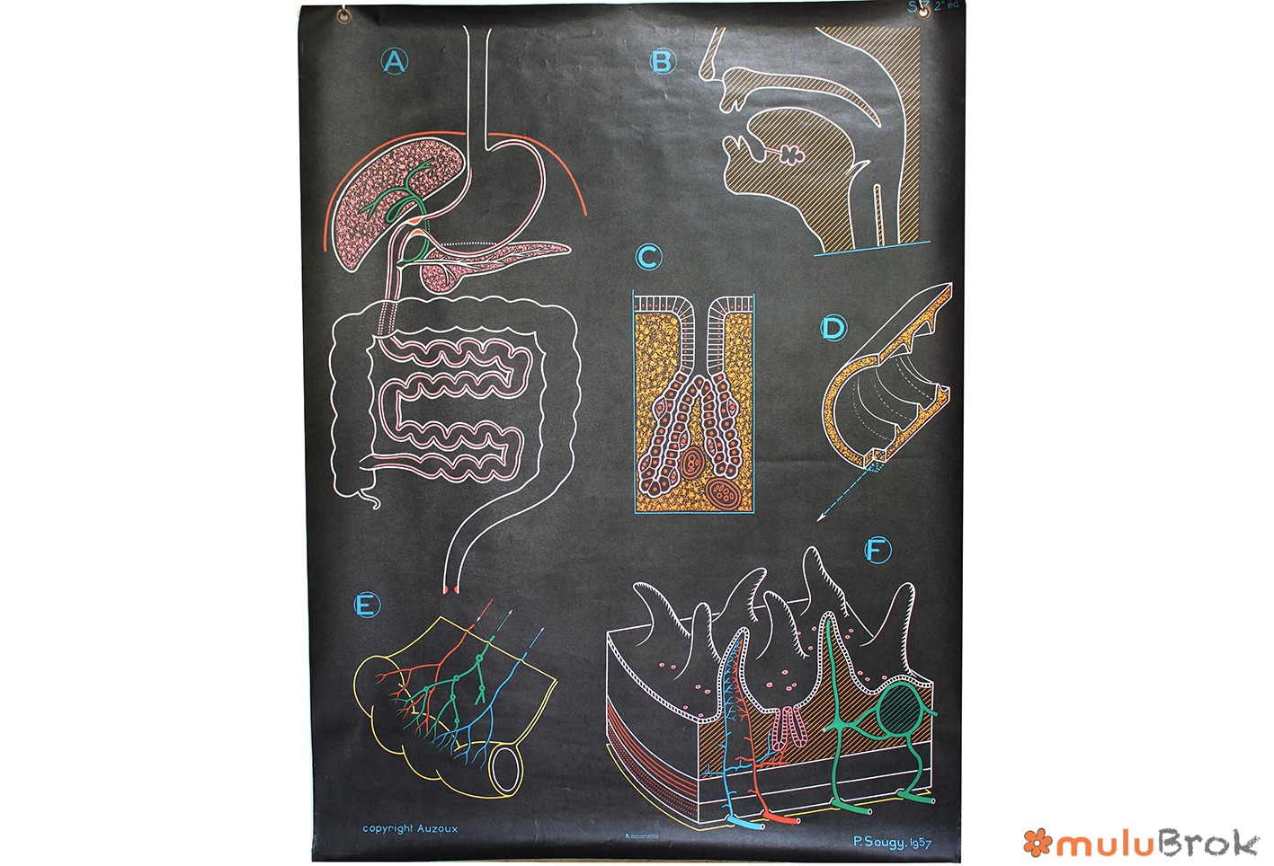 Ancienne affiche scolaire sérigraphiée, l’appareil digestif.