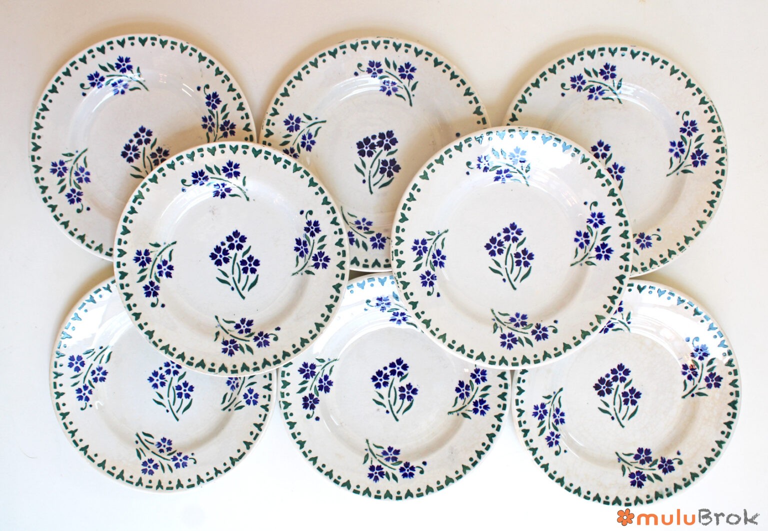Anciennes assiettes à dessert en Porcelaine Opaque de Gien.