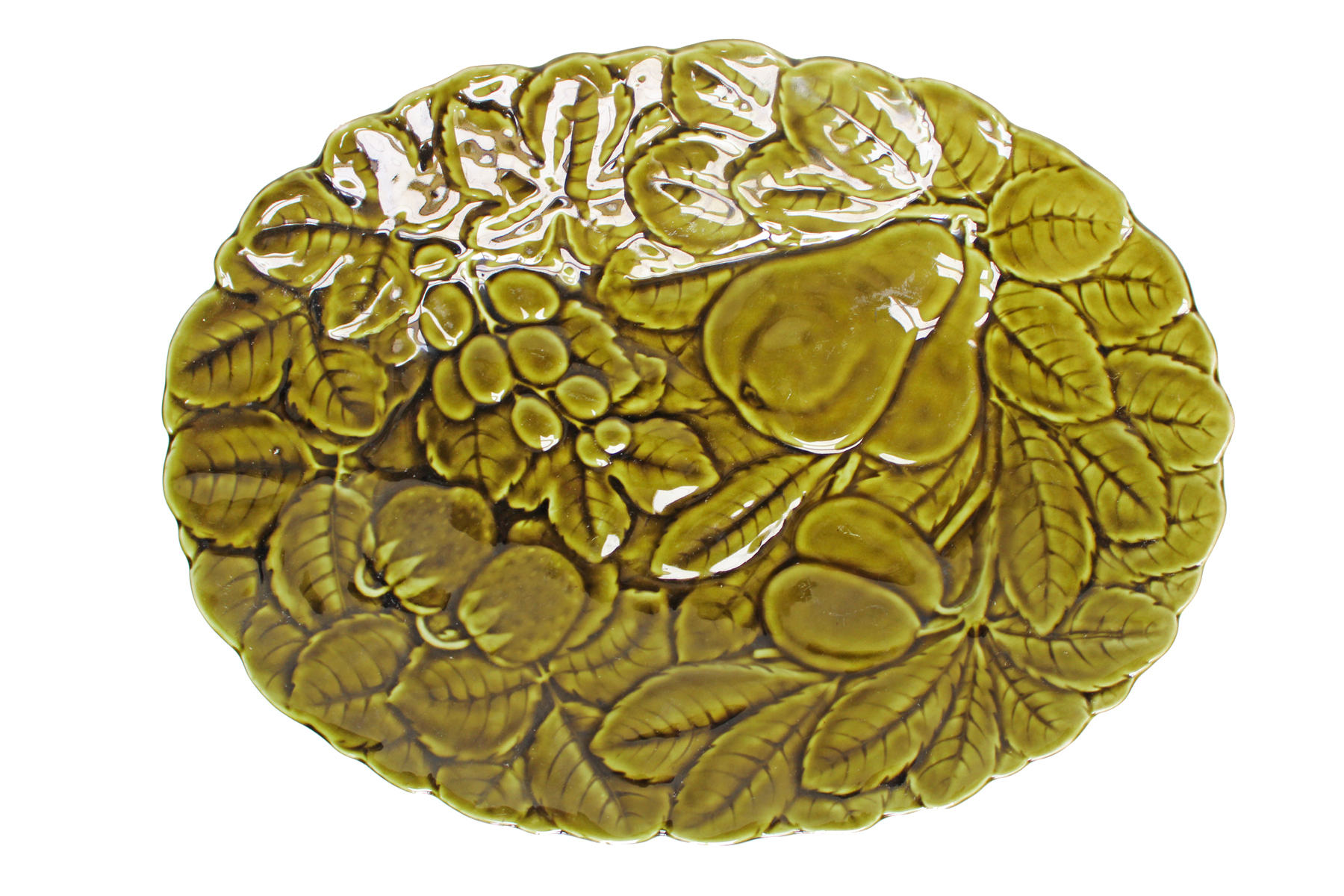 Plat ancien en barbotine de Sarreguemines.