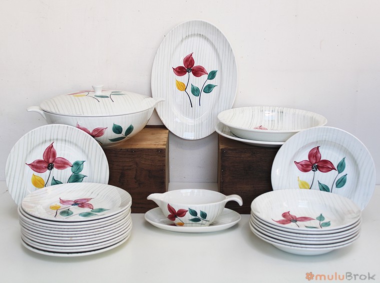 A NOTER : quelques tâches sur le plat 27cm et 1 petit éclat sur le bord de la saucière.