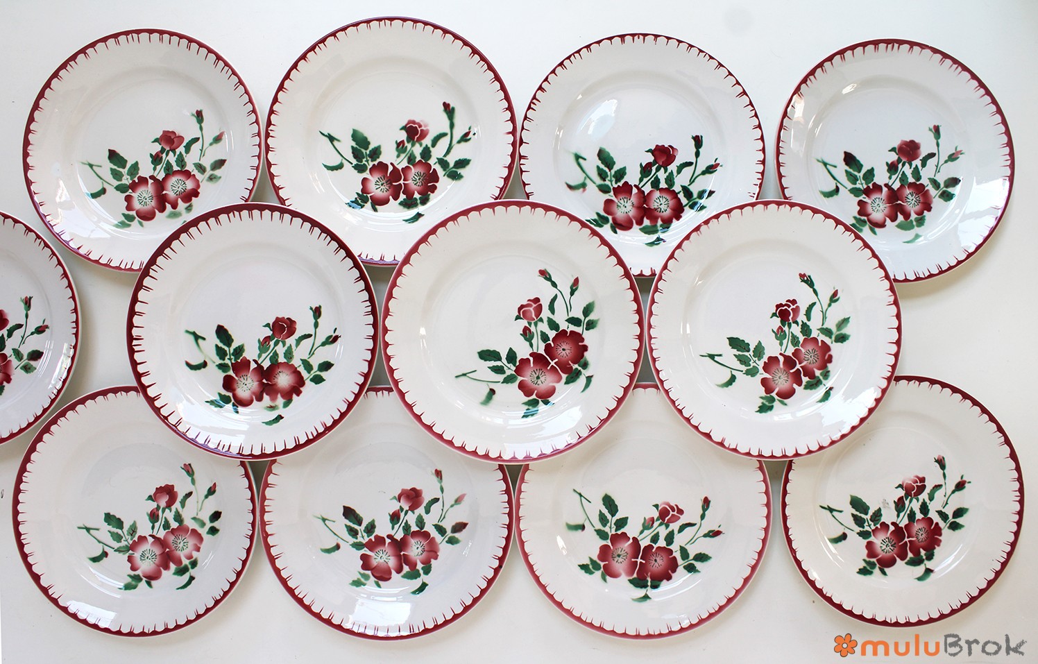 Ravissant décor de fleurs et feuillage et le contour sur chaque pièce.