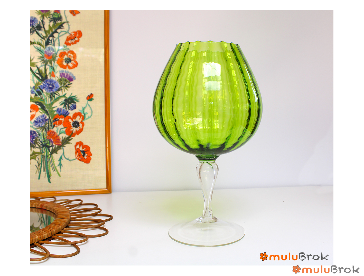 Vase sur pied en verre soufflé Empoli Italie des années 60.