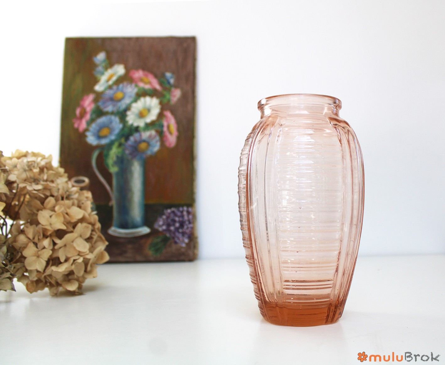 Ancien vase en verre rose, style Art Déco.