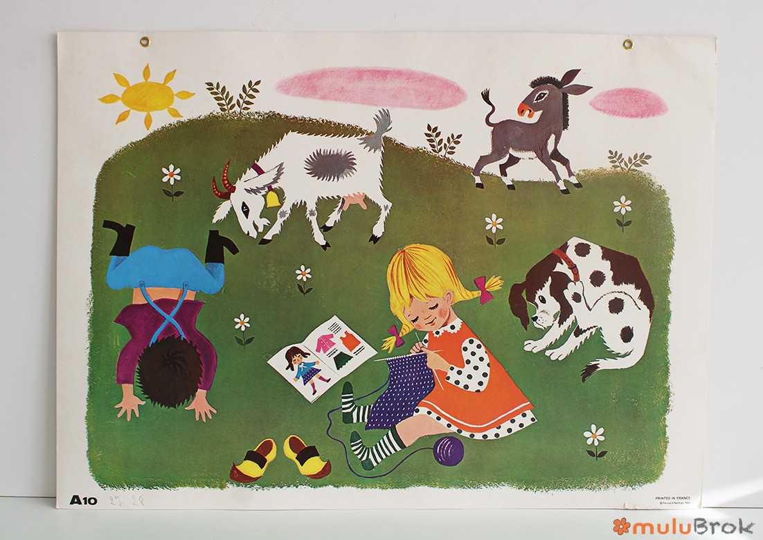 Ancienne affiche scolaire cartonnée Daniel et Valérie.