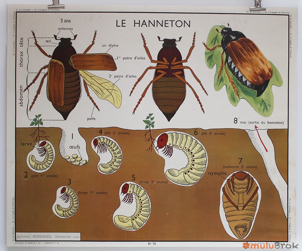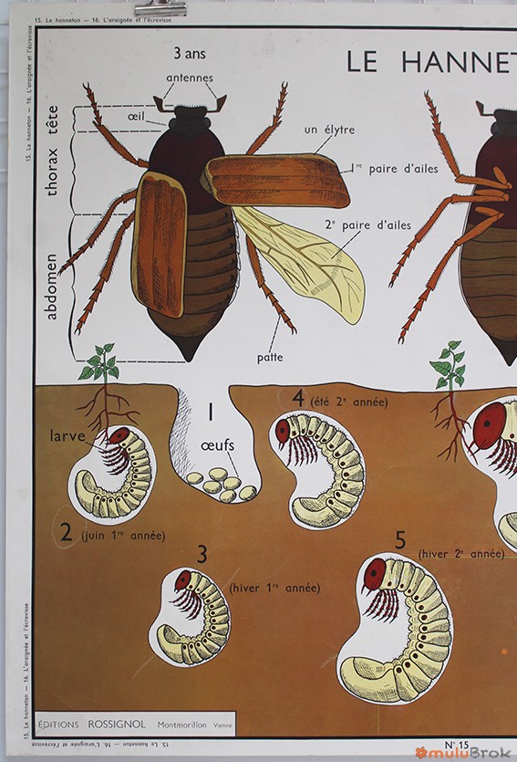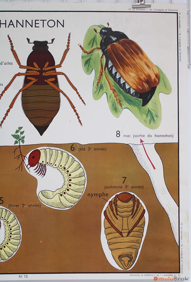 Ancienne affiche scolaire sur les insectes.