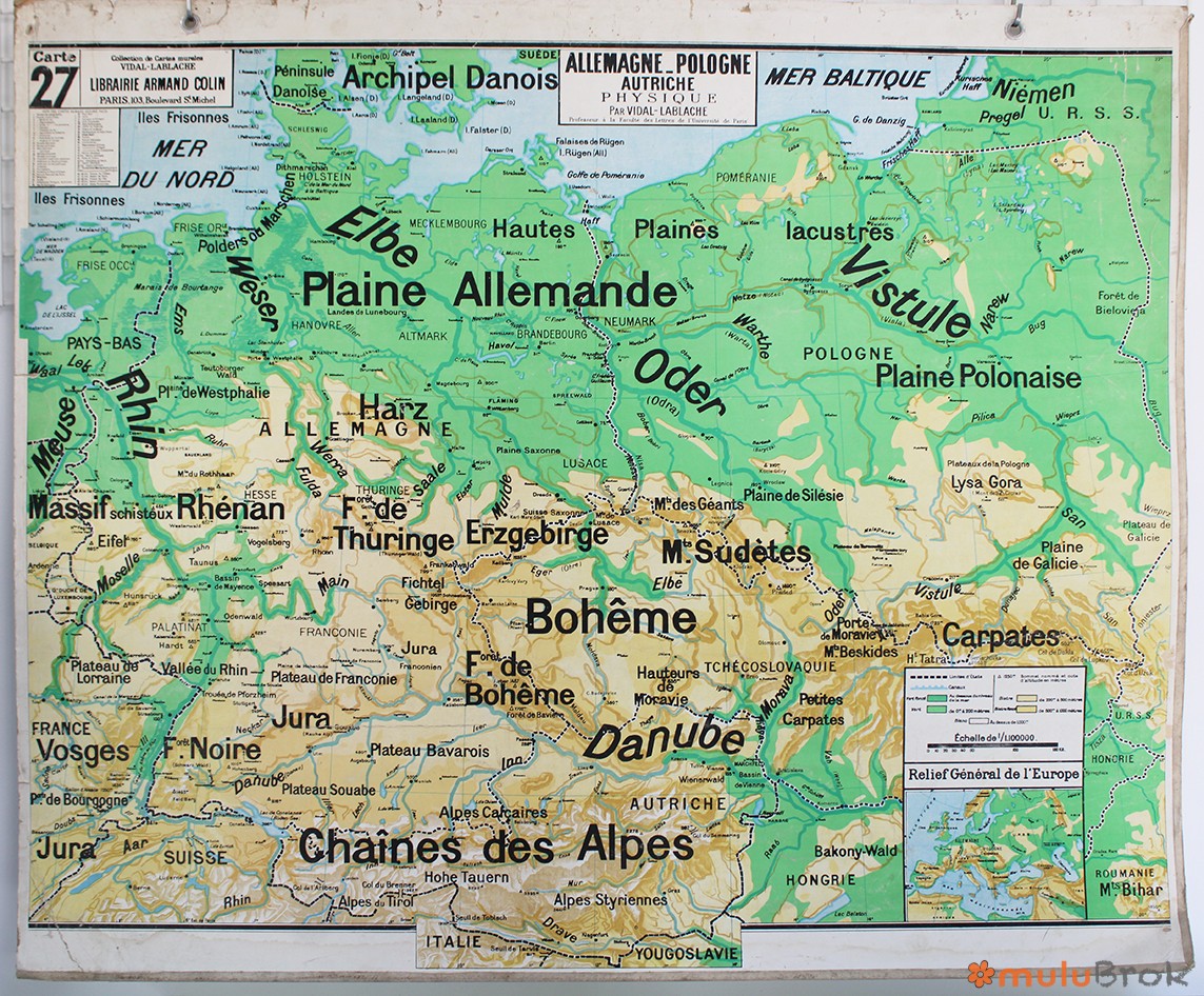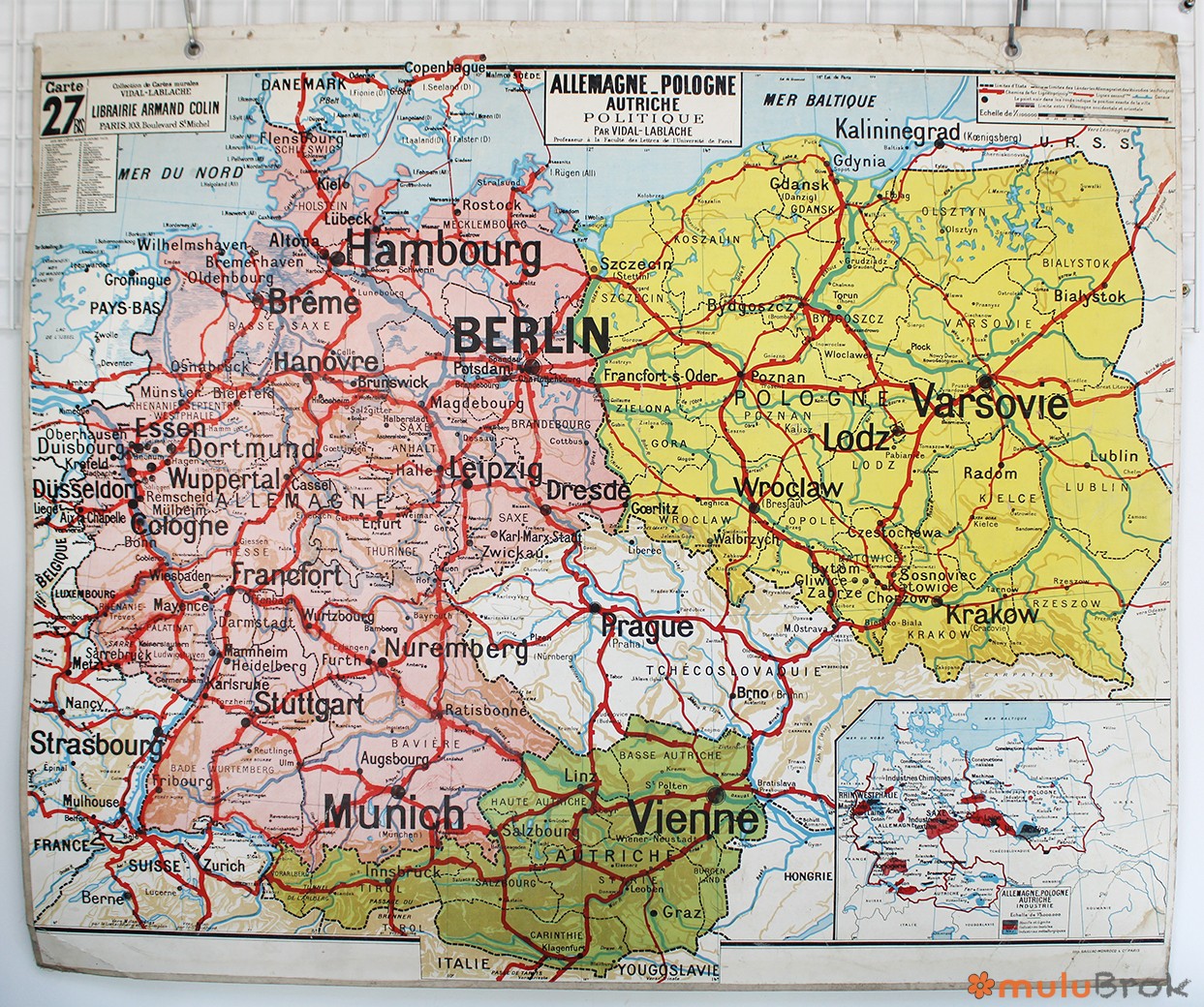 Ancienne affiche scolaire de l’Allemagne, Pologne et Autriche