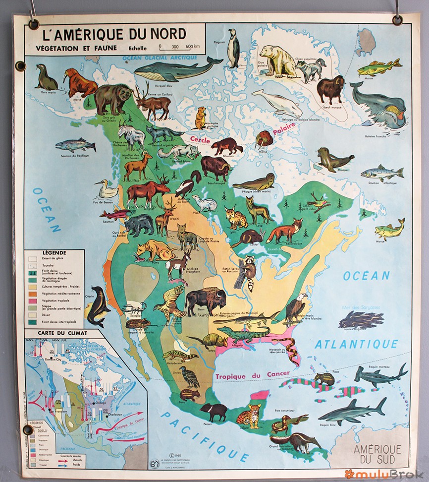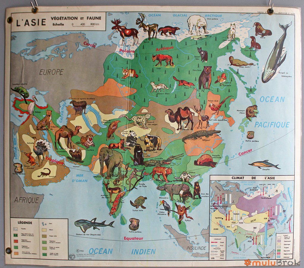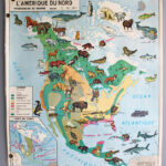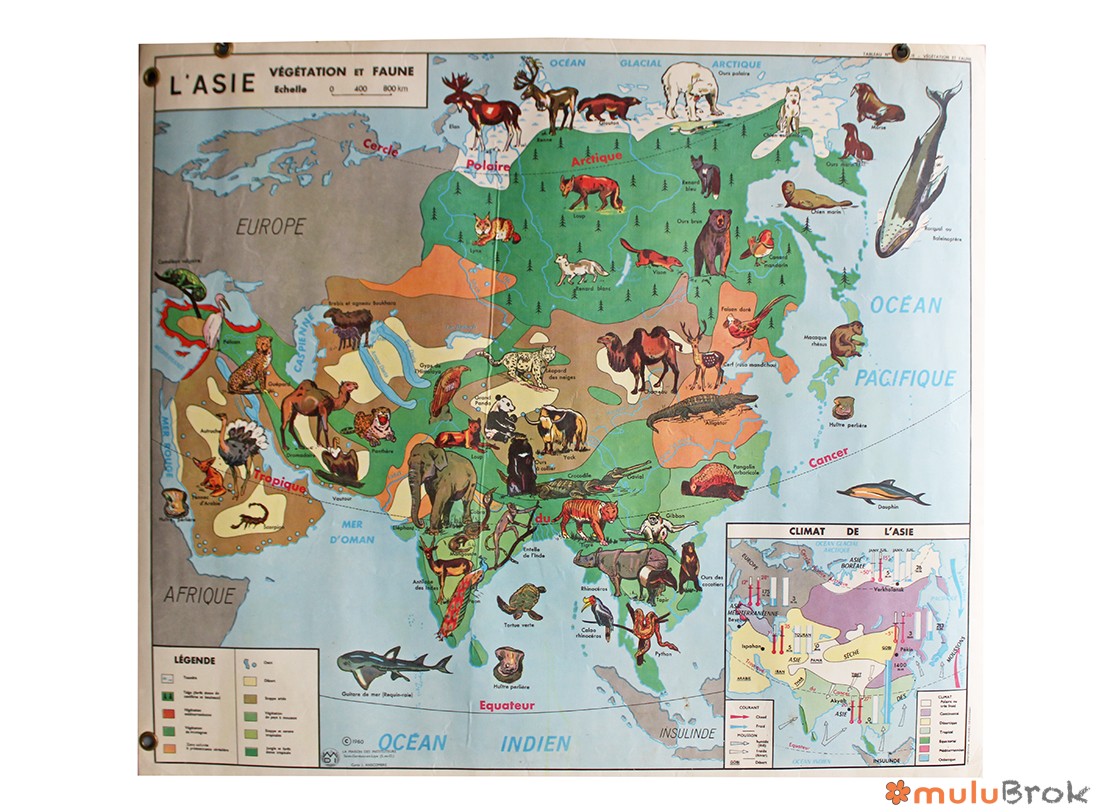 Ancienne affiche scolaire Végétation et Faune de l’Amérique et l’Asie.