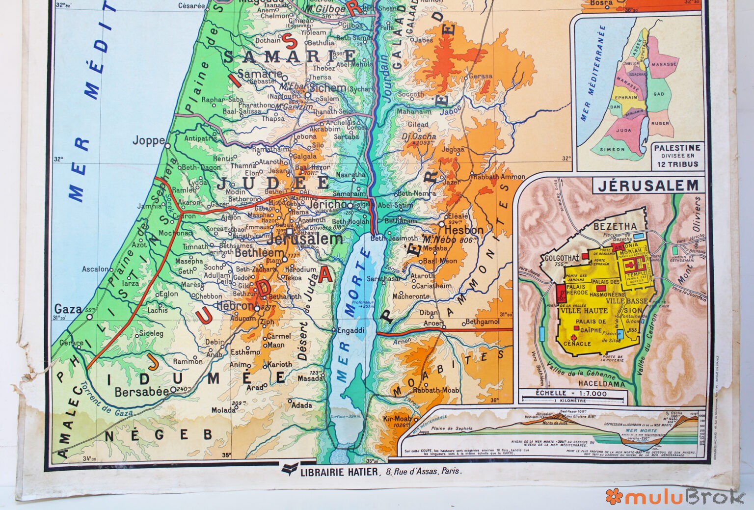 Ancienne affiche scolaire de la Palestine et de l’Egypte.