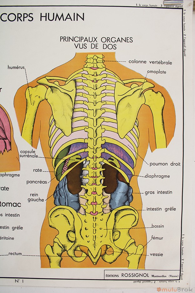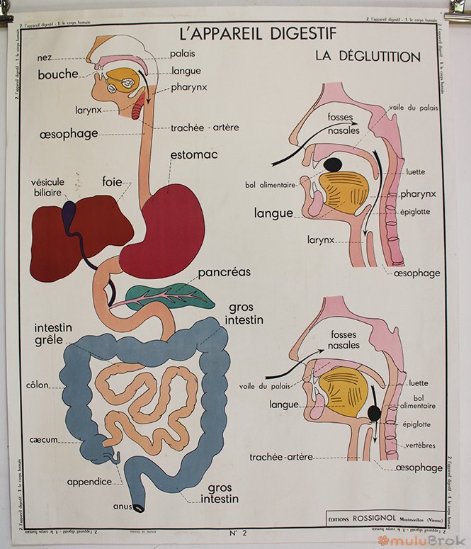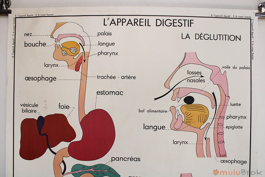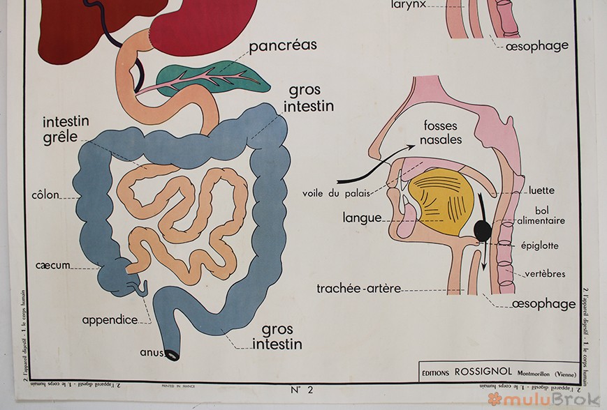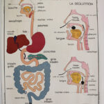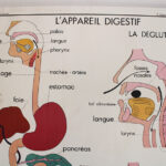 Ancienne affiche scolaire Le Corps humain et l’Appareil digestif.