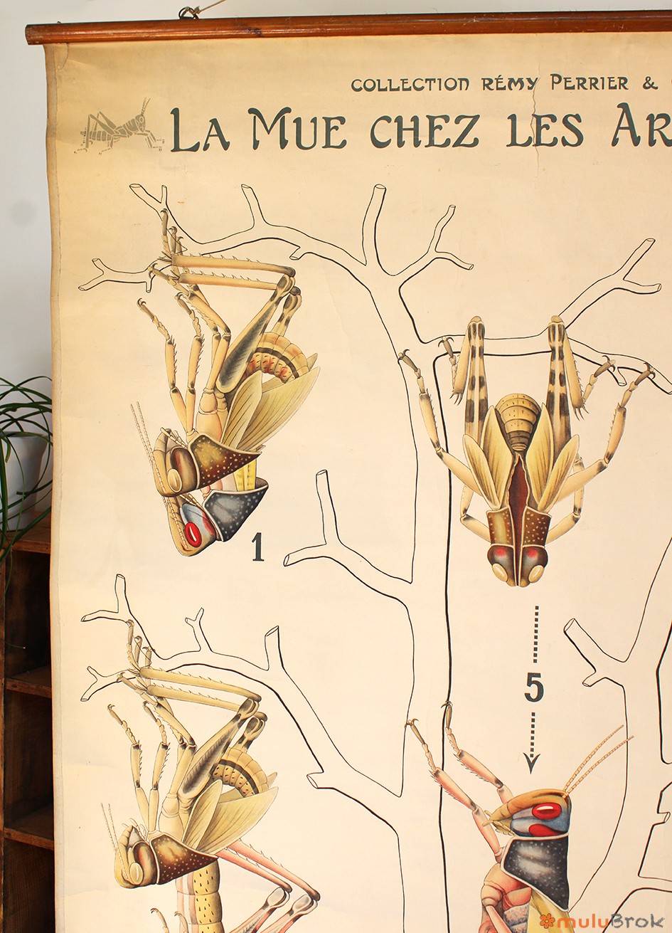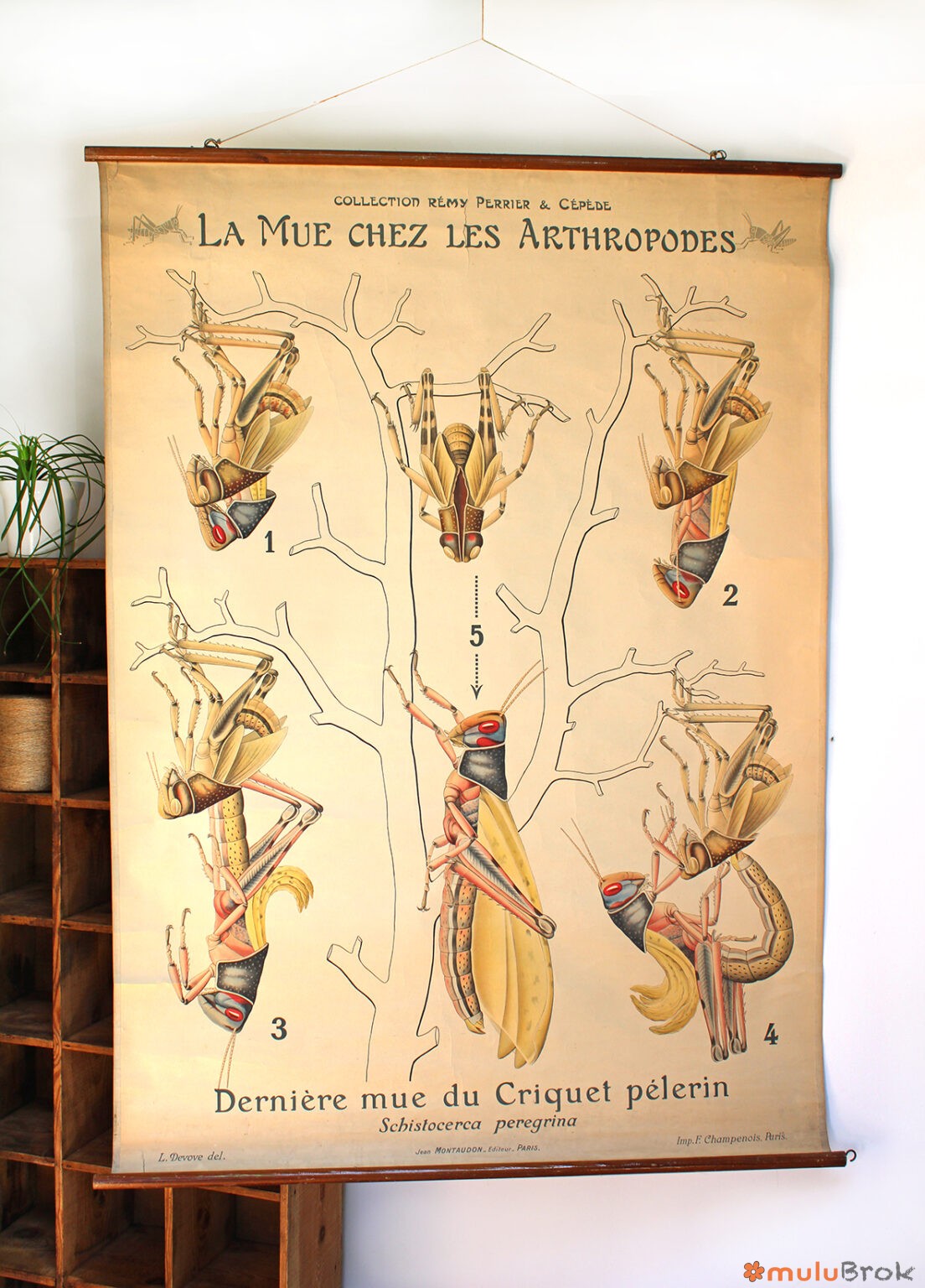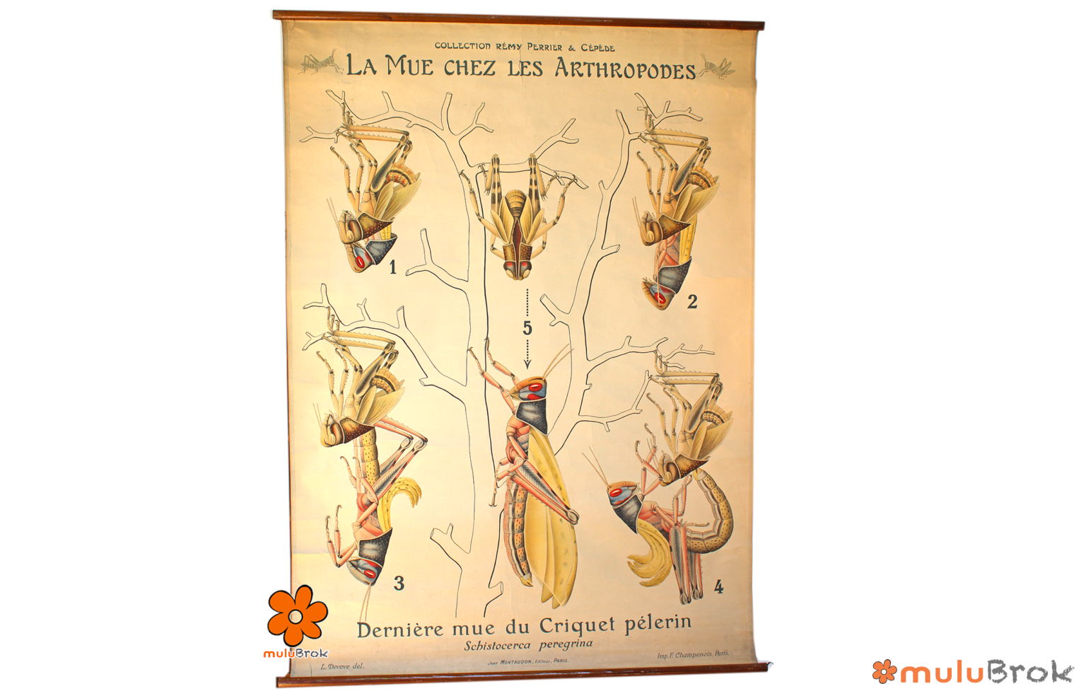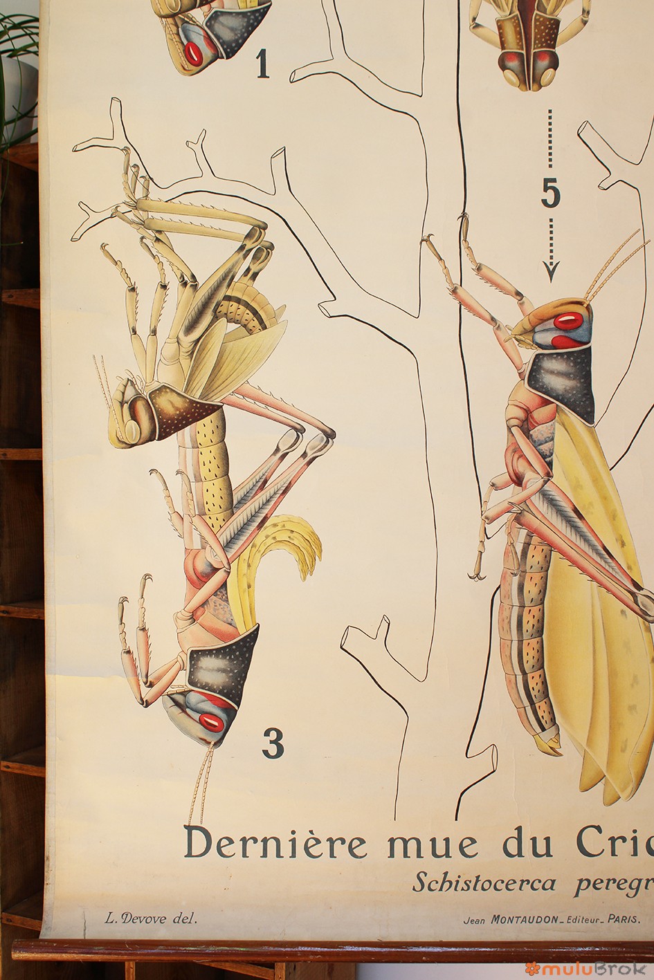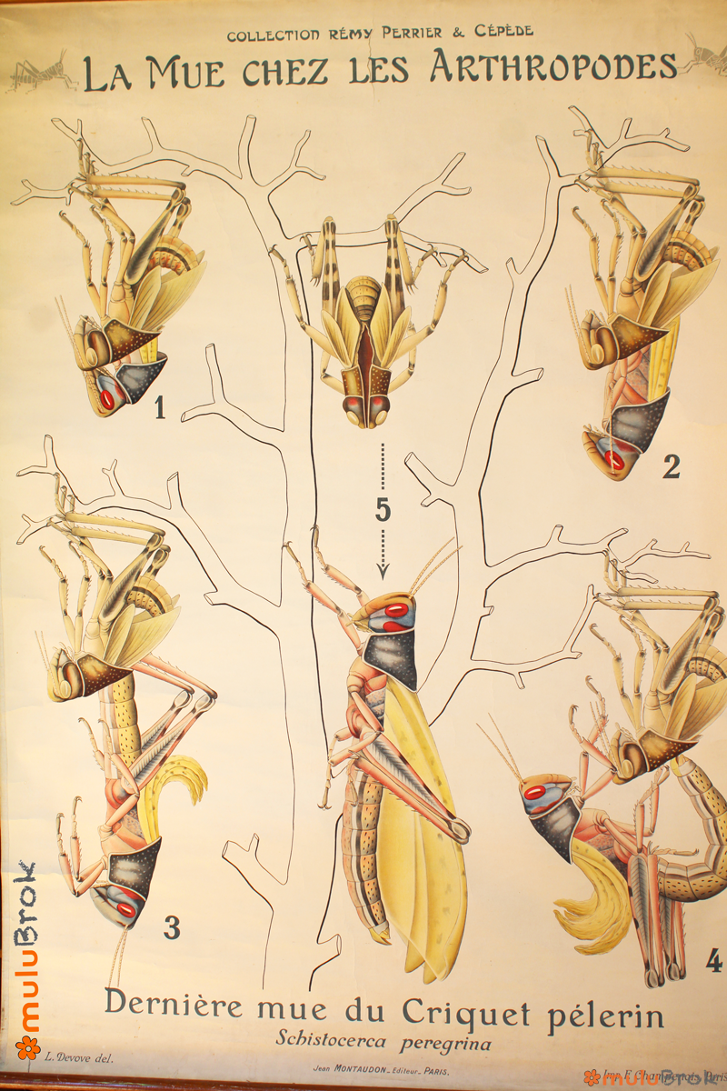 Affiche scolaire sur la dernière mue chez le criquet pèlerin.