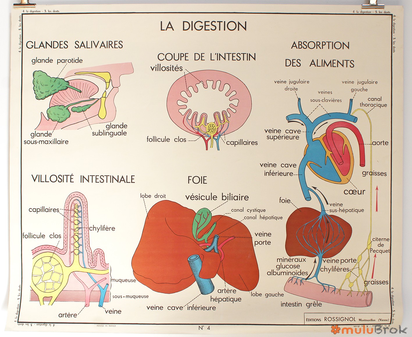 Verso n°4 : LA DIGESTION (glandes salivaires, coupe de l’intestin…)