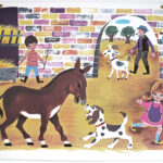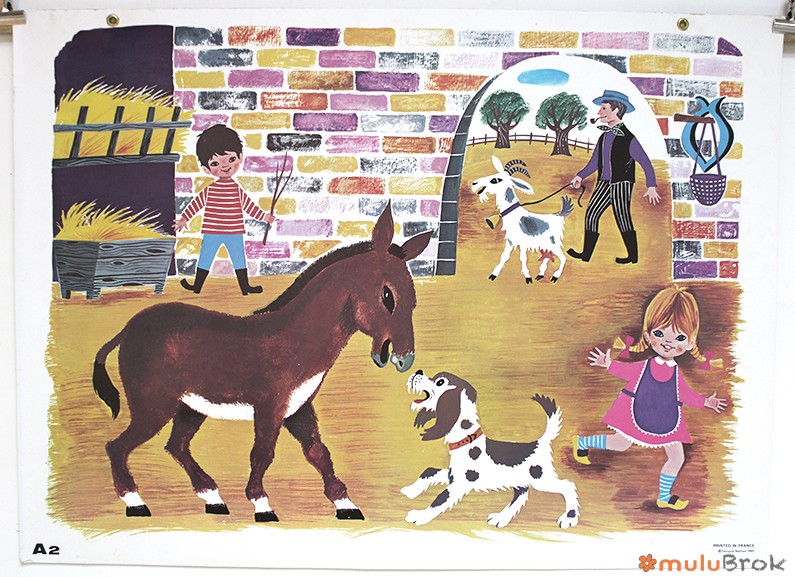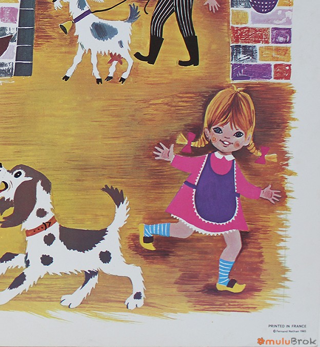 Ancienne affiche scolaire Scène d’enfants.