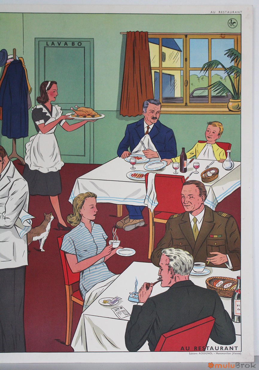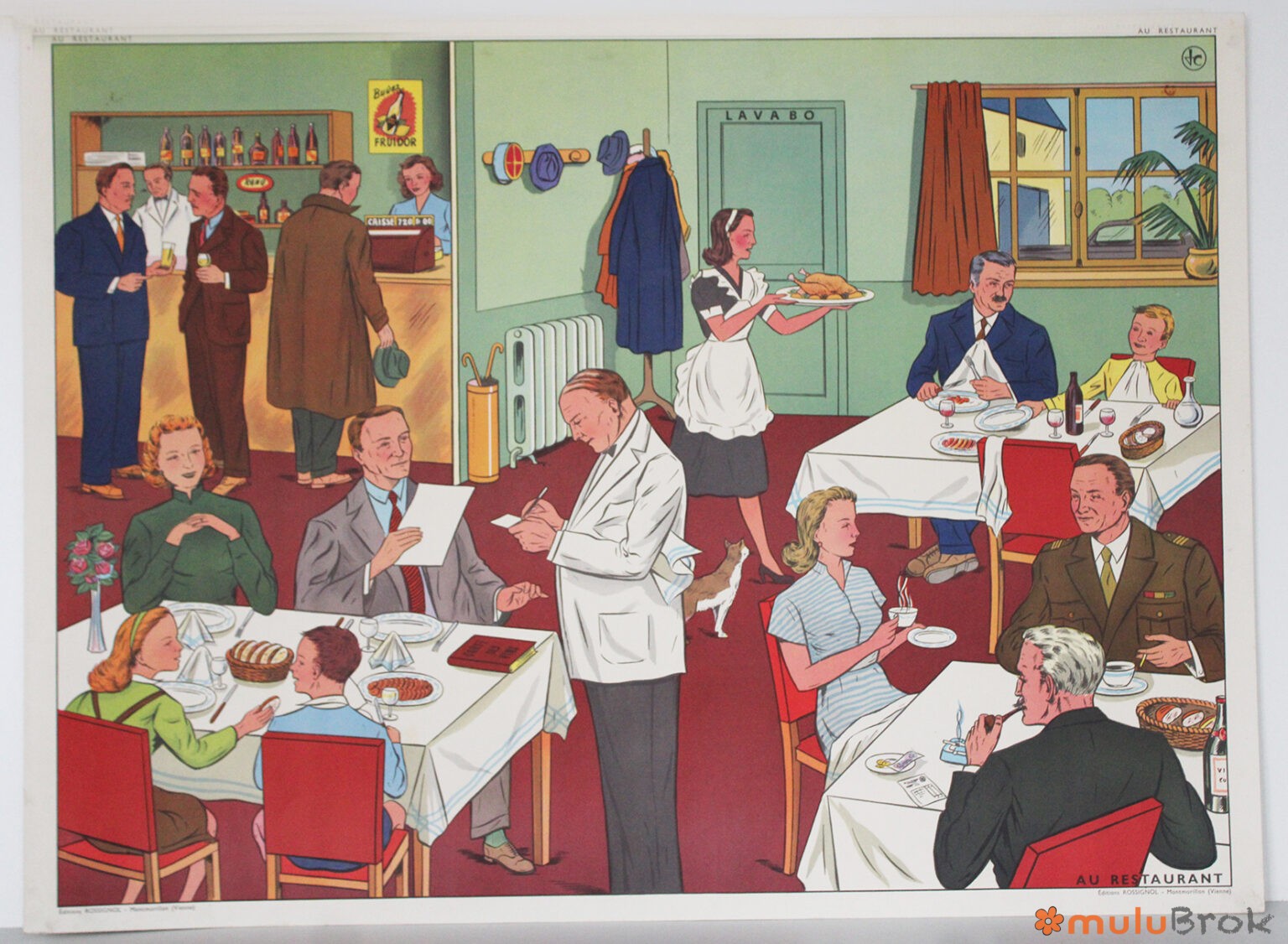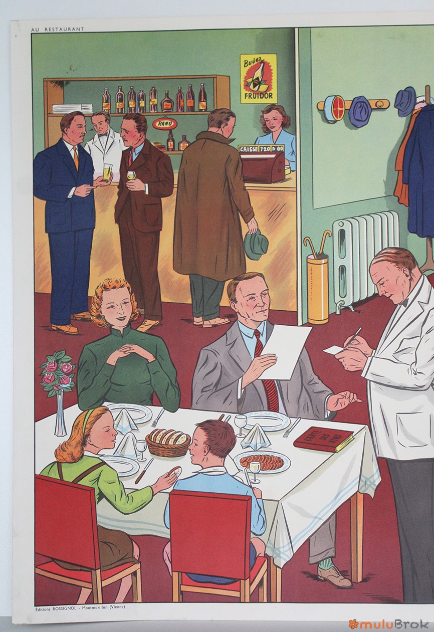 Recto : AU RESTAURANT en famille ou entre amis, boire un verre au comptoir …