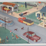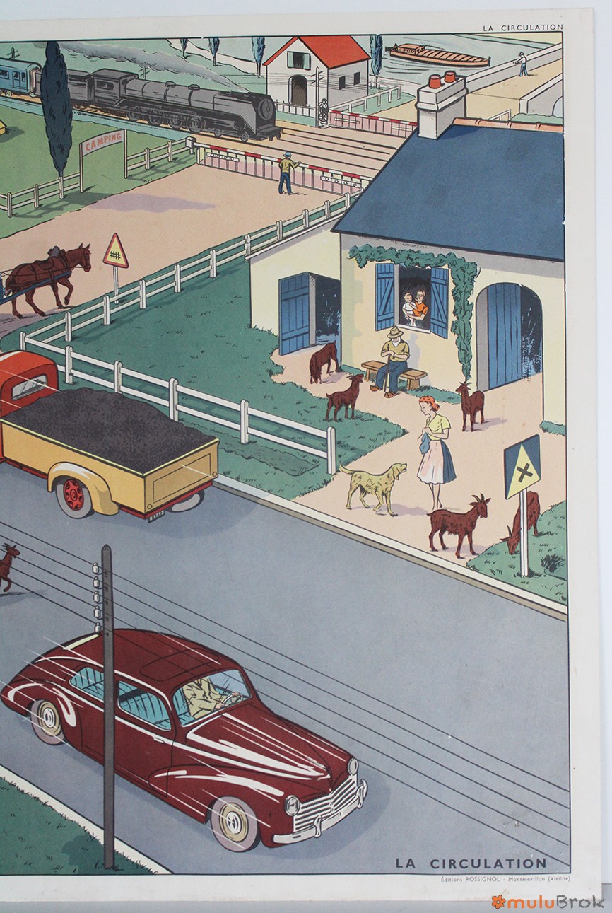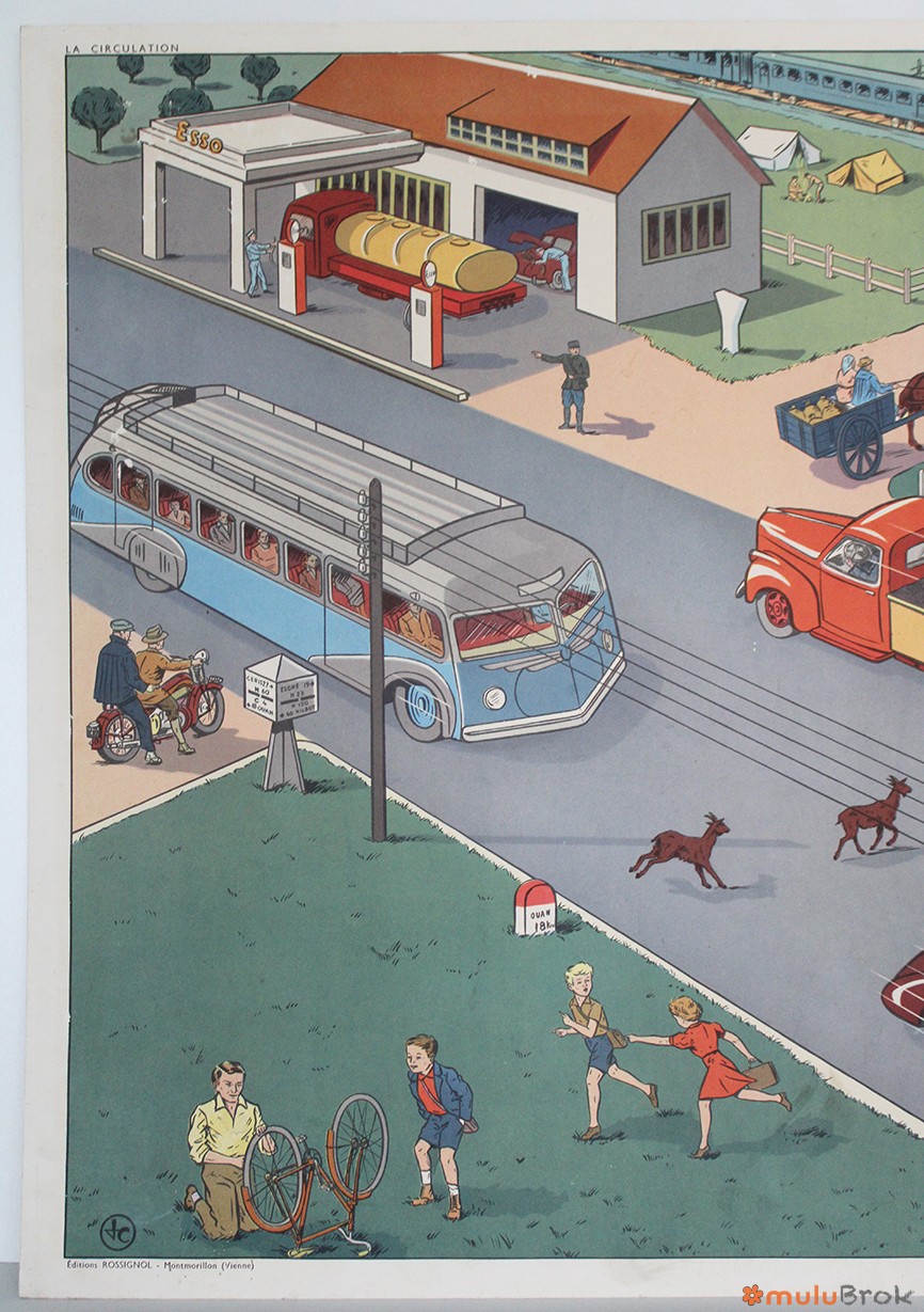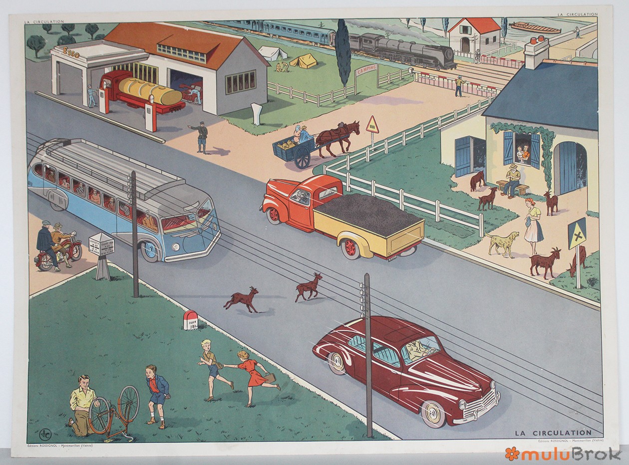 Verso : LA CIRCULATION L’autocar, camion et automobile, la station Esso, les enfants et animaux…