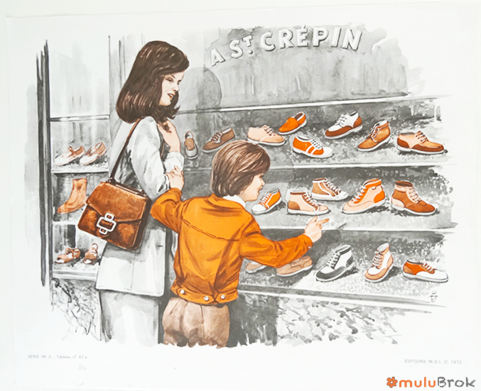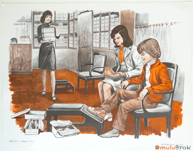 RECTO : Série IM 3 Tableau n° 47 a b c : Le magasin de chaussures.