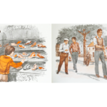 Affiches pédagogiques Le magasin de chaussures et La partie de pétanque.