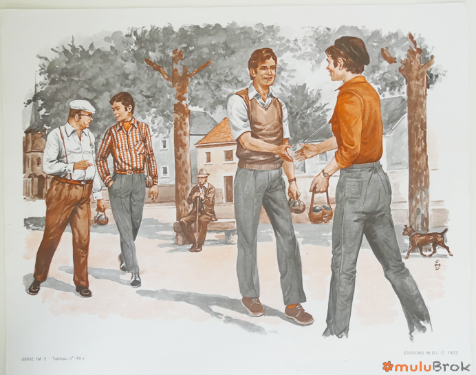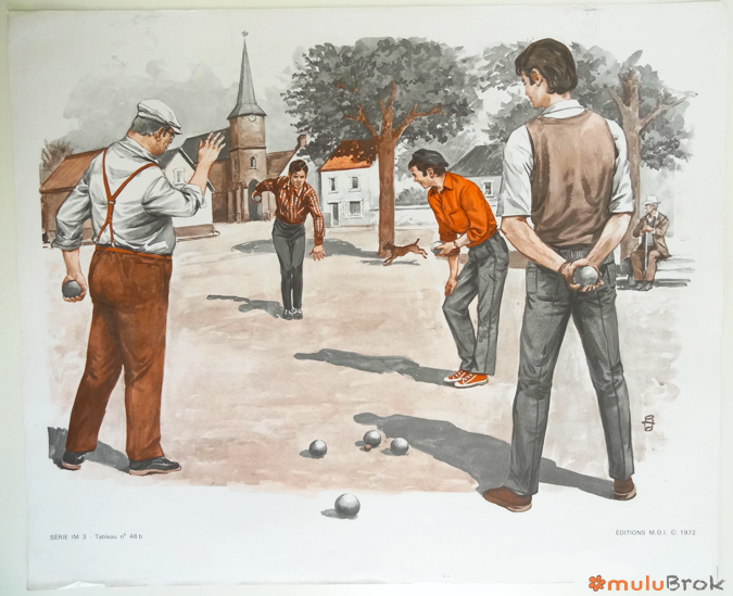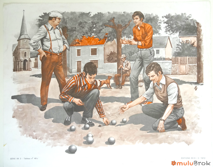 VERSO : Série IM 3 Tableau n° 48 a b c : La partie de pétanque.