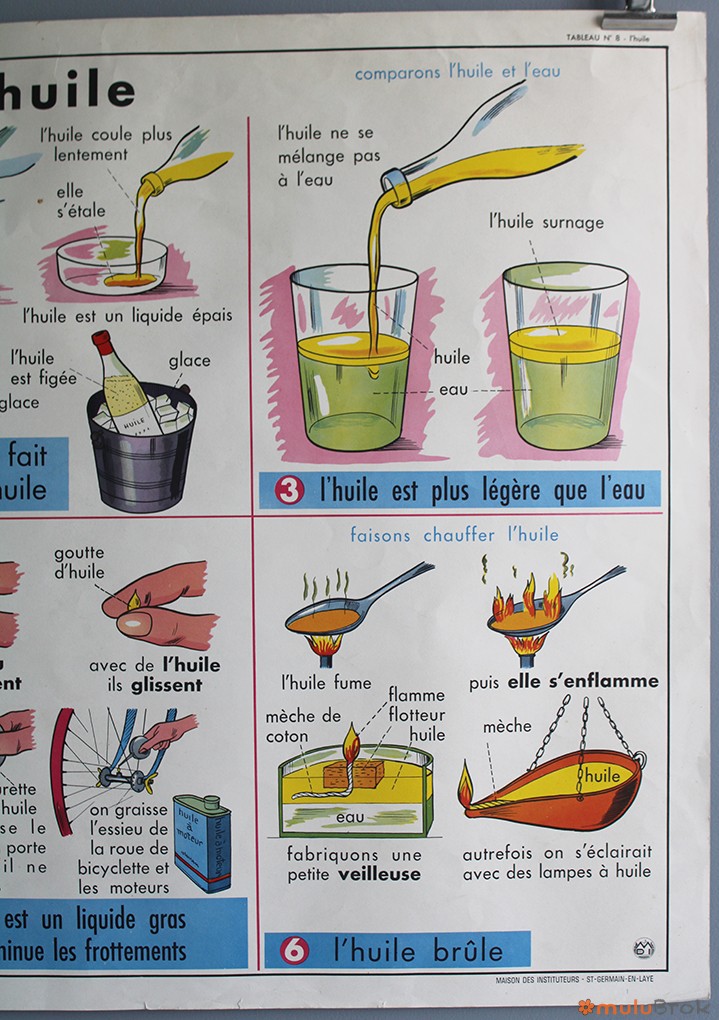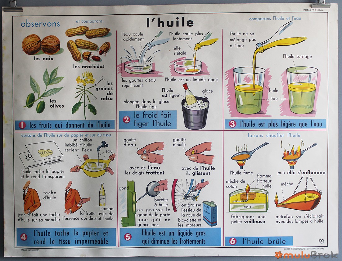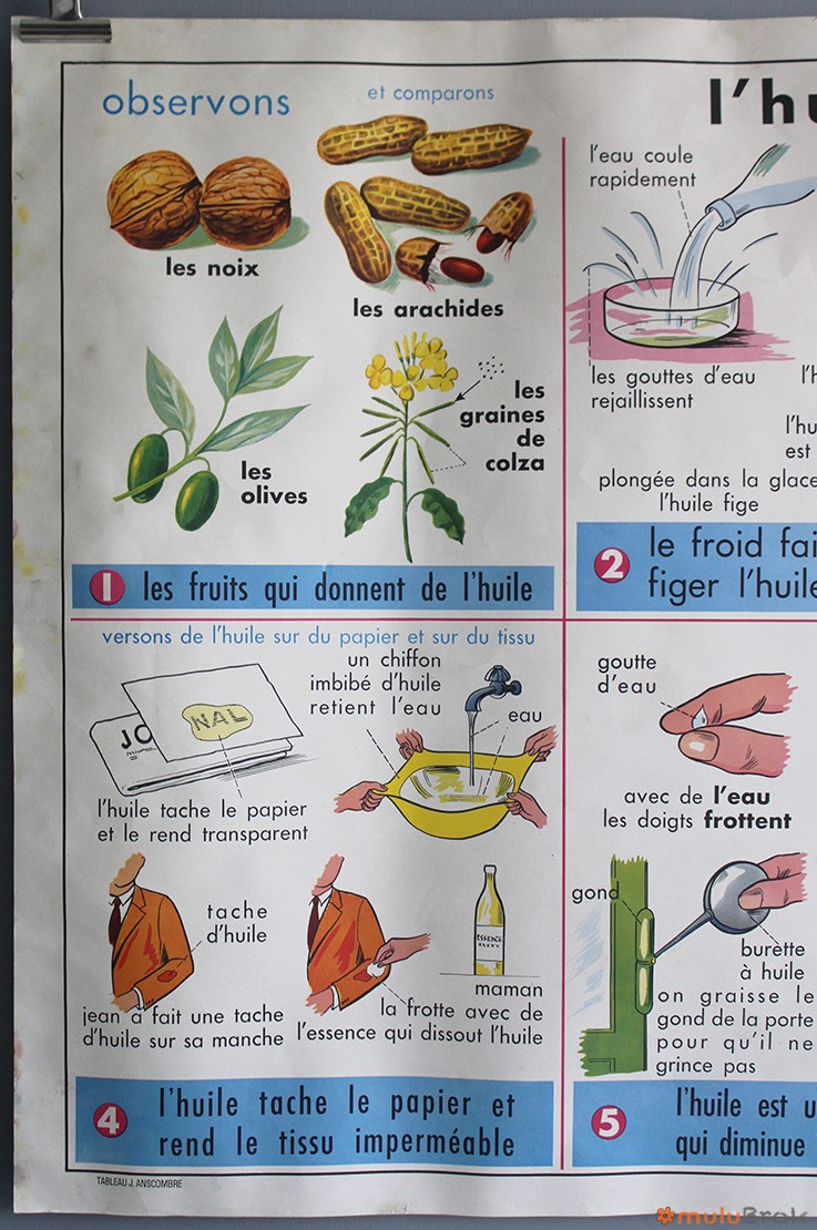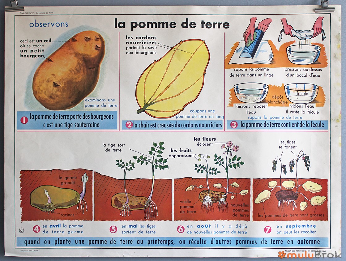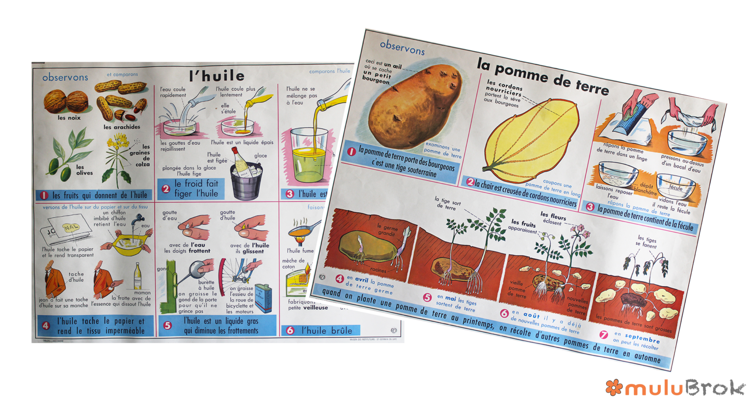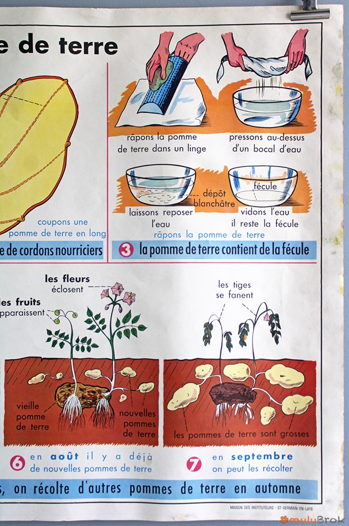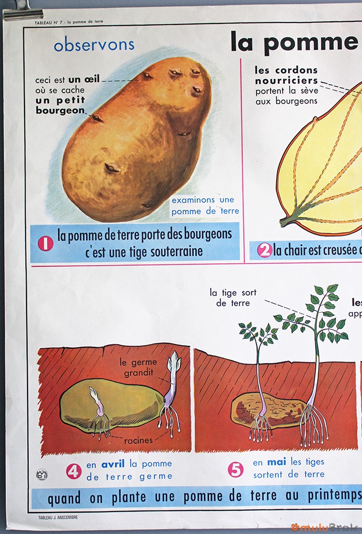 Ancienne affiche scolaire L’huile La Pomme de terre.