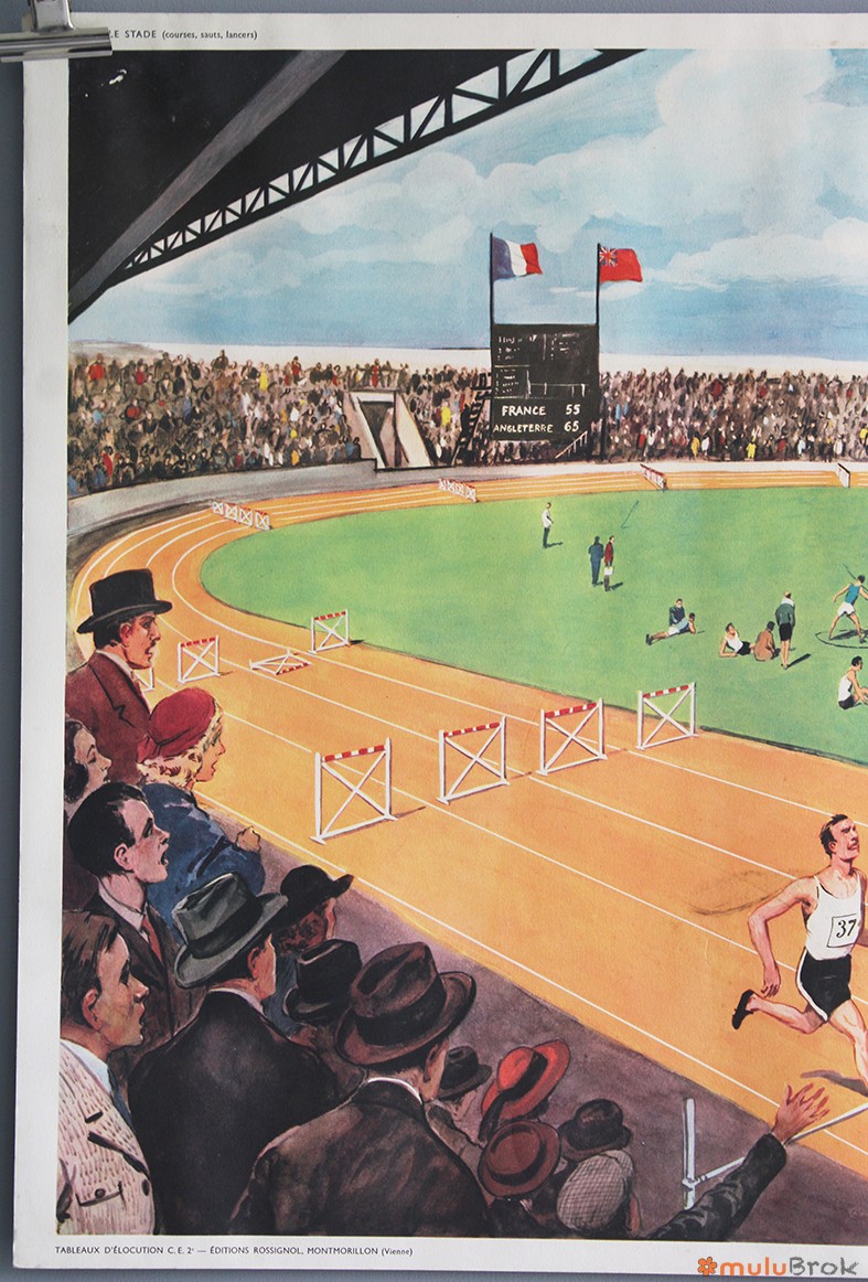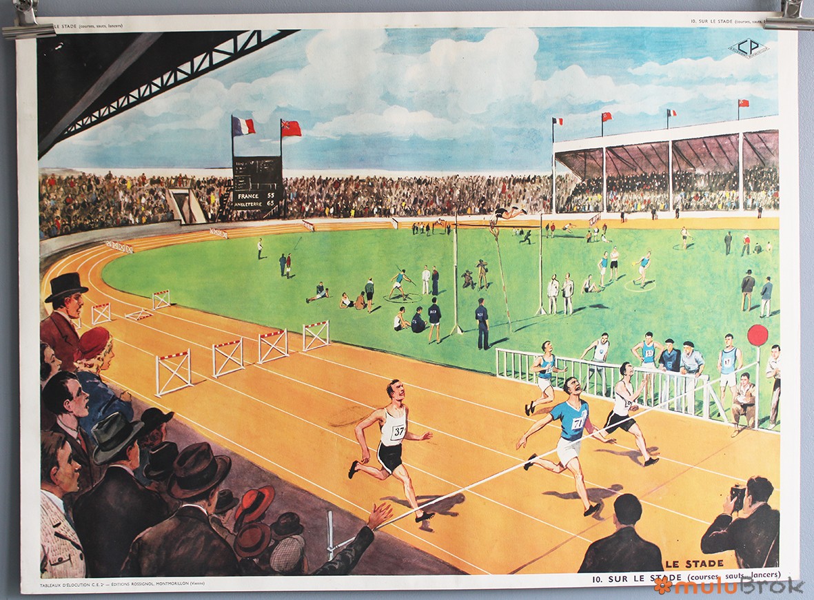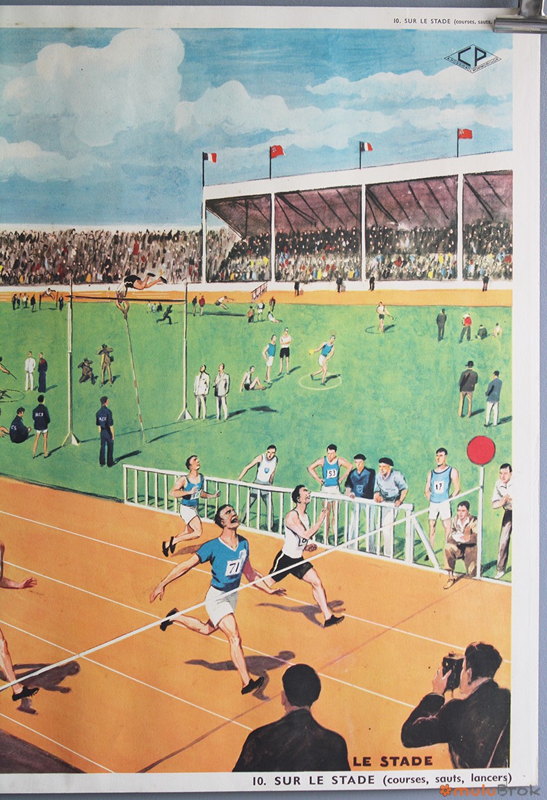 Recto : SUR LE STADE… courses, sauts, lancers…