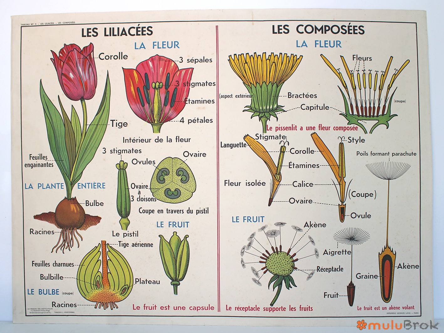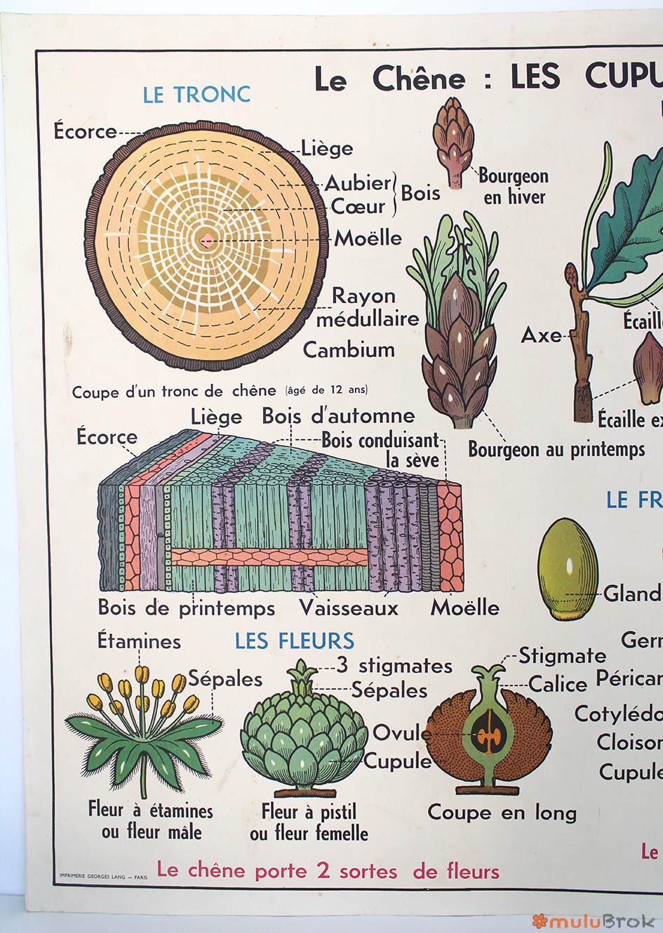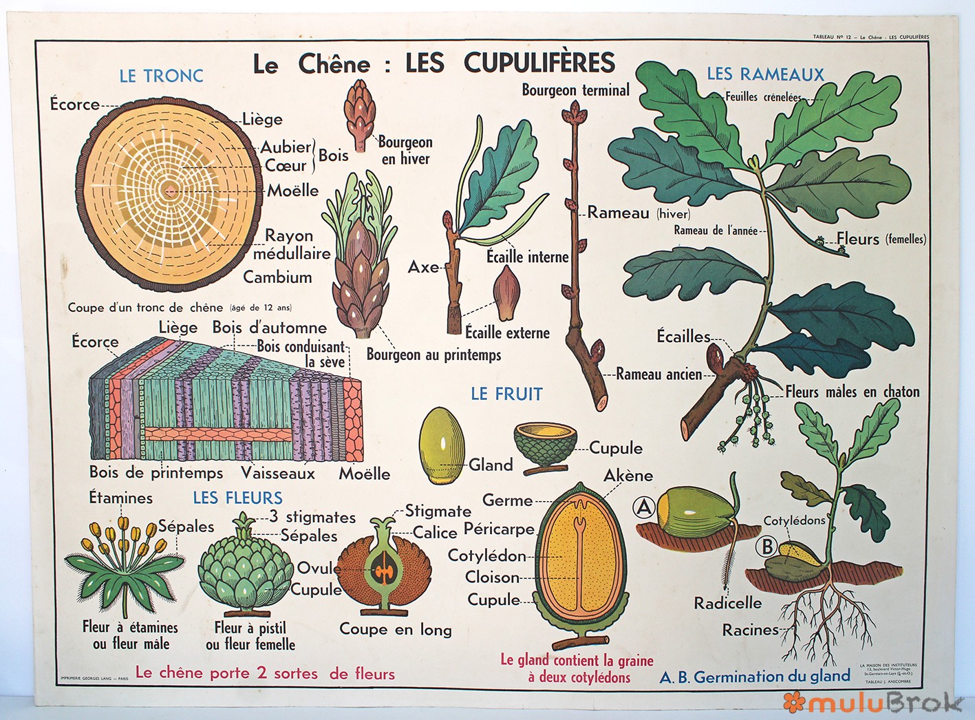 Affiche scolaire Les liliacées les composées et Le chêne les cupulifères.