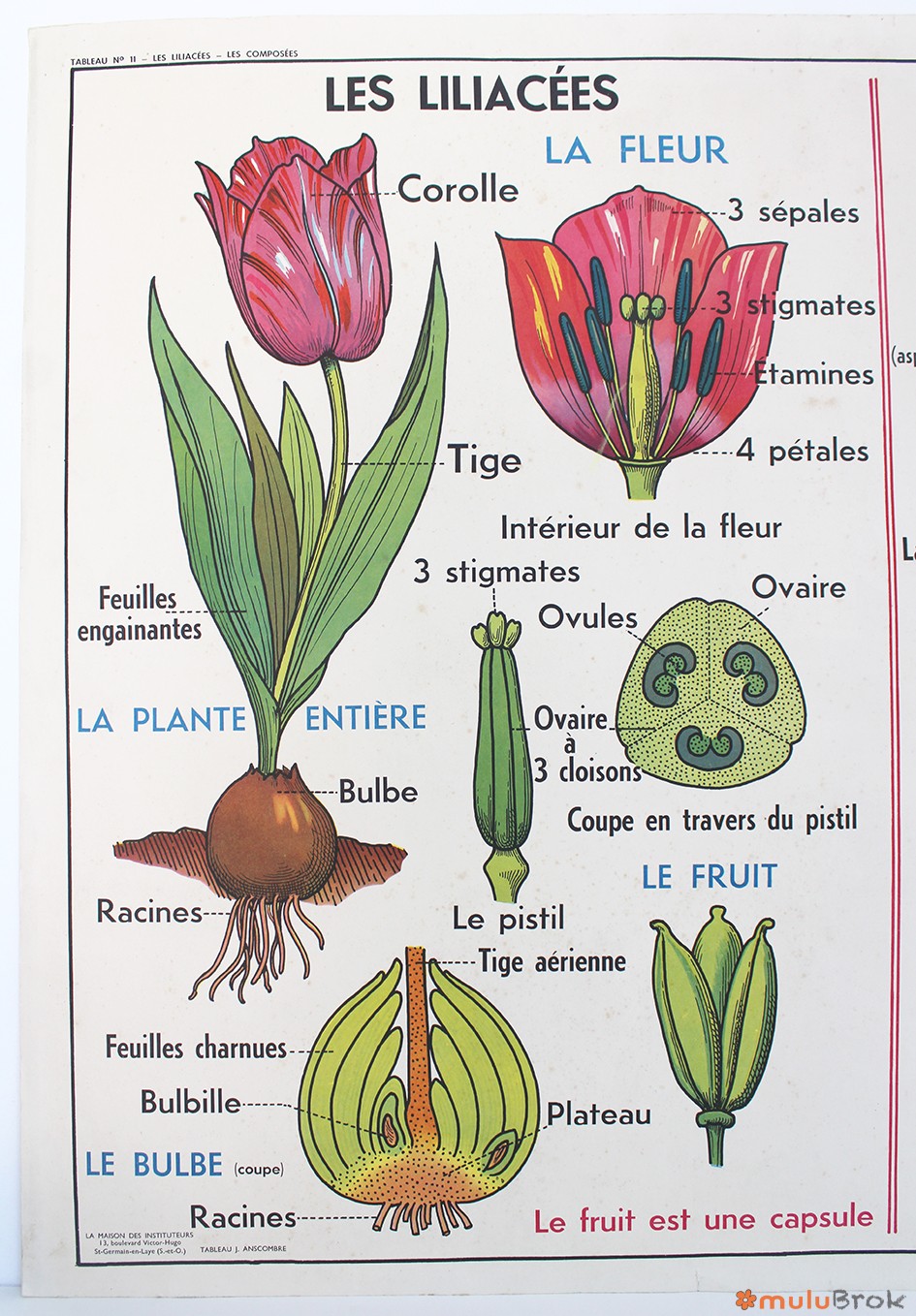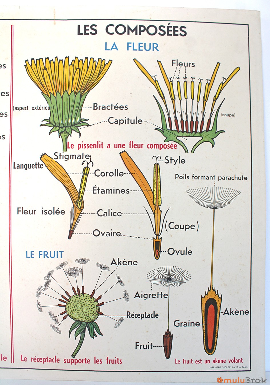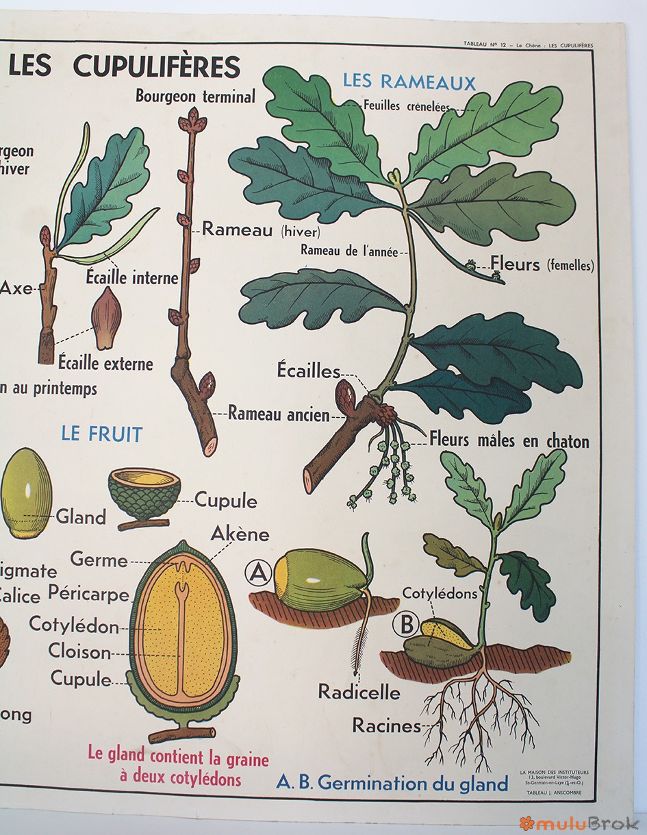 Affiche scolaire Les liliacées les composées et Le chêne les cupulifères.