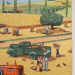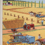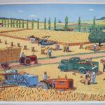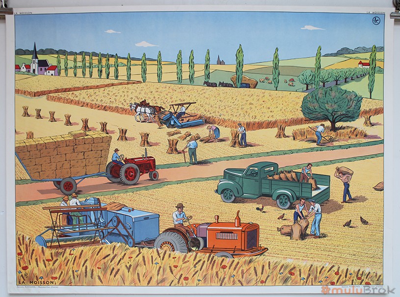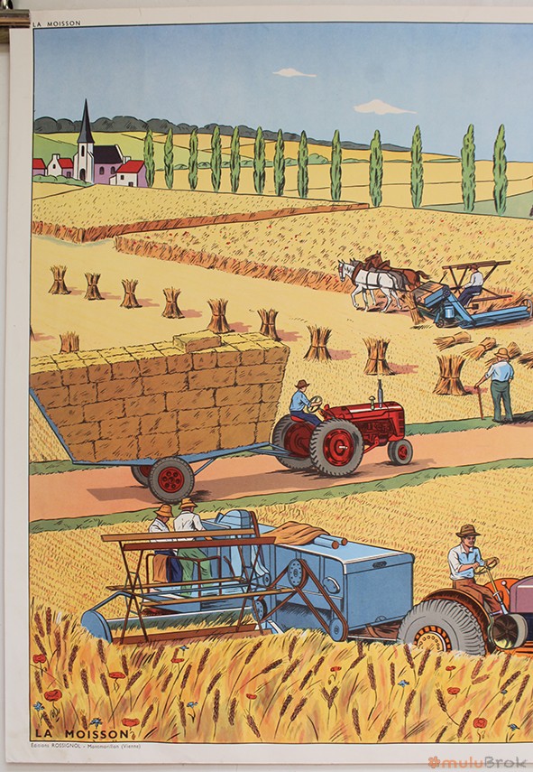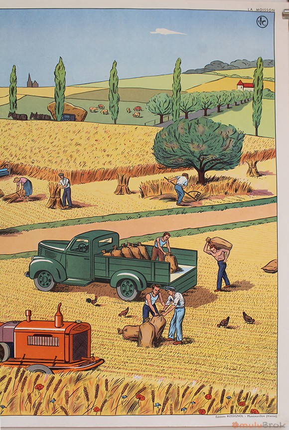 Recto : LES MOISSONS (champs, moissonneuse batteuse, ballots de paille, épis de blé…).