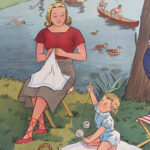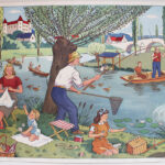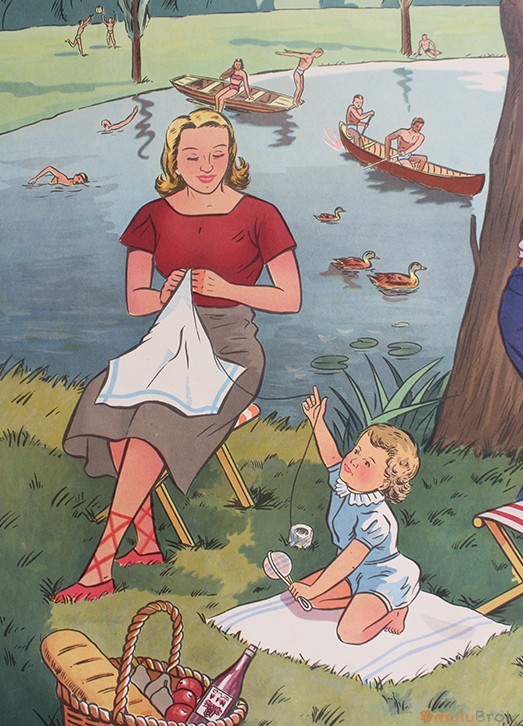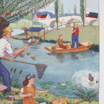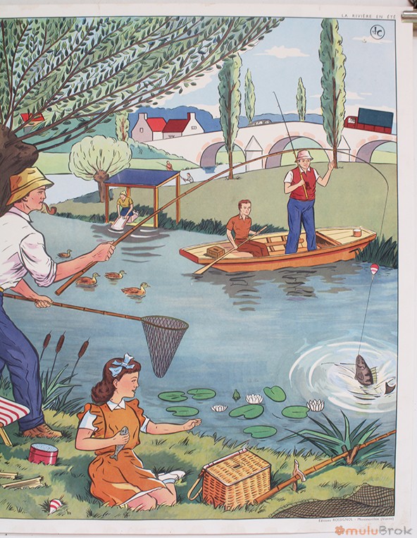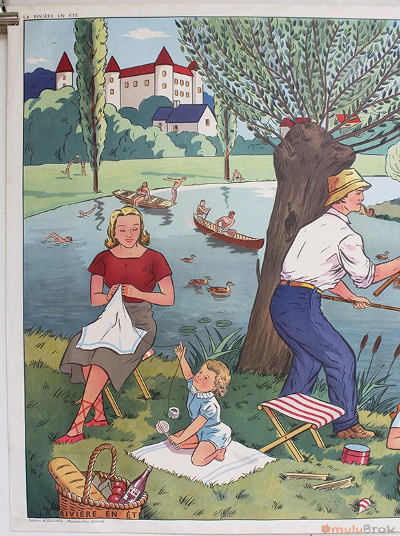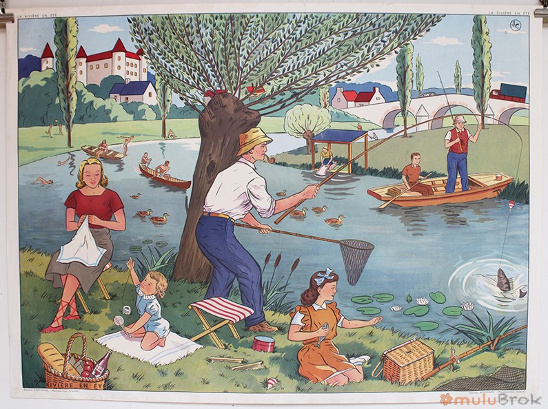 Verso : LA RIVIERE EN ETE (pêcheurs, le pique-nique, la lavandière, jeux nautiques…)