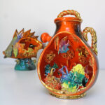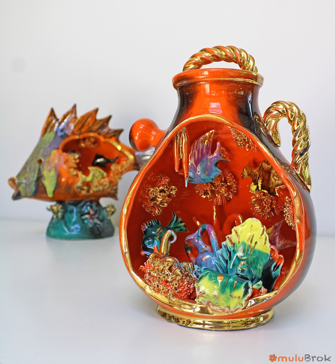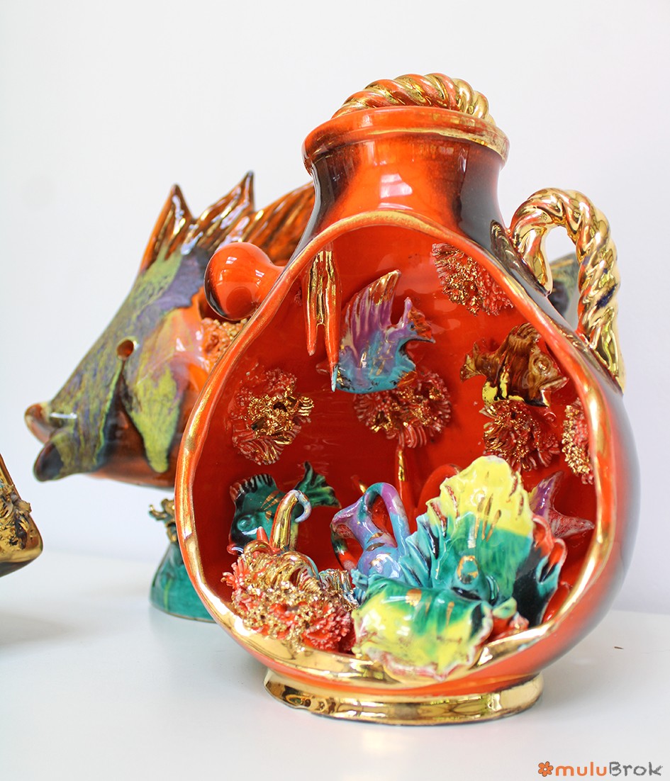 Belle décoration agrémentée de petits poissons et coquillages en relief.