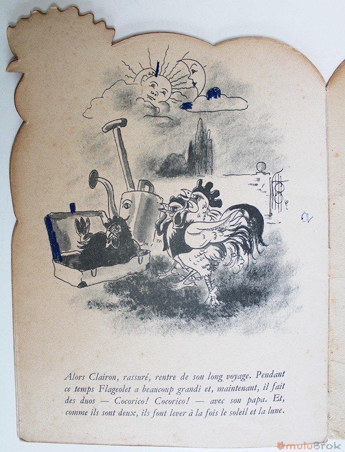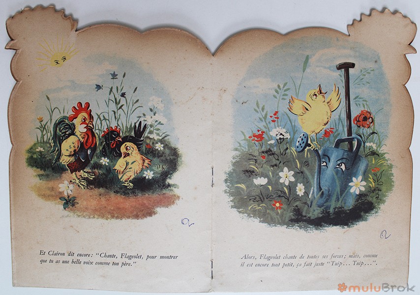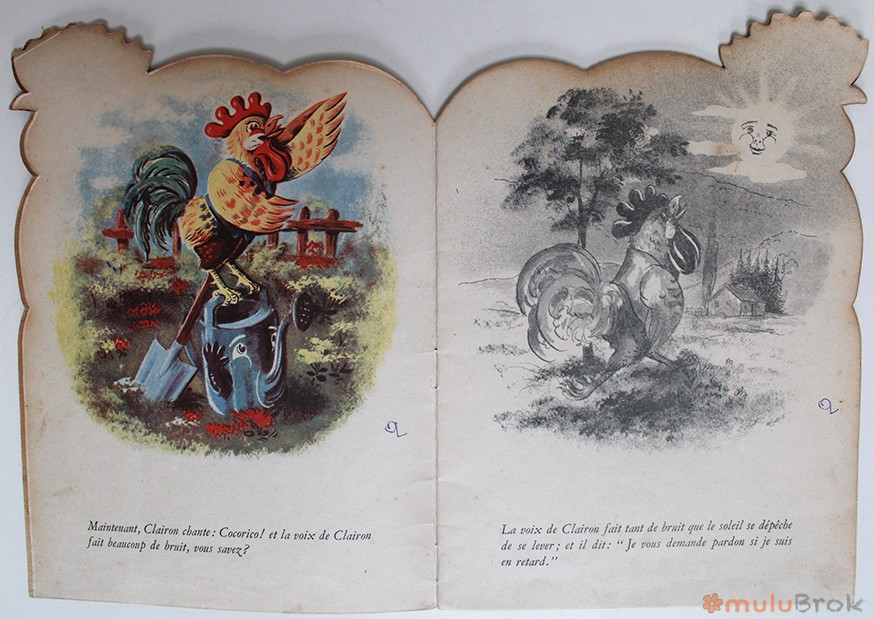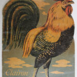 Clairon, c’est le coq. Il a une crête rouge, et des plumes de toutes les couleurs.