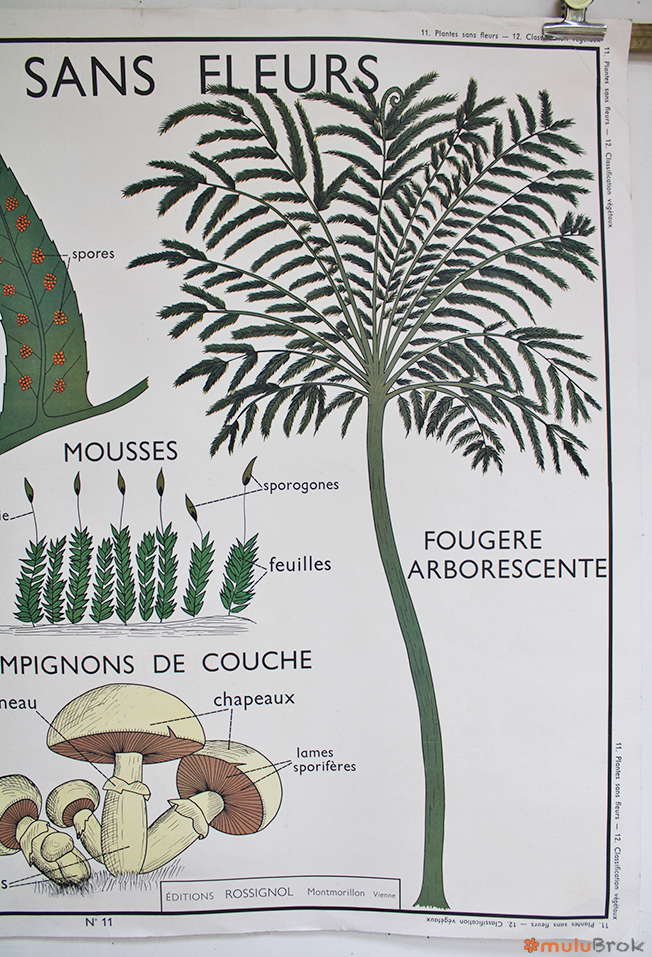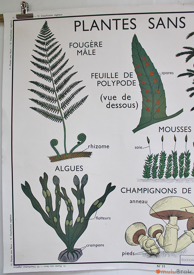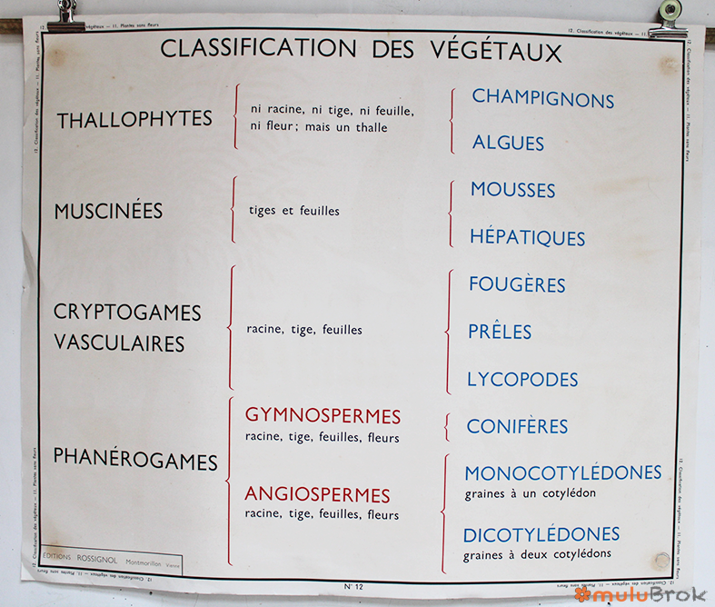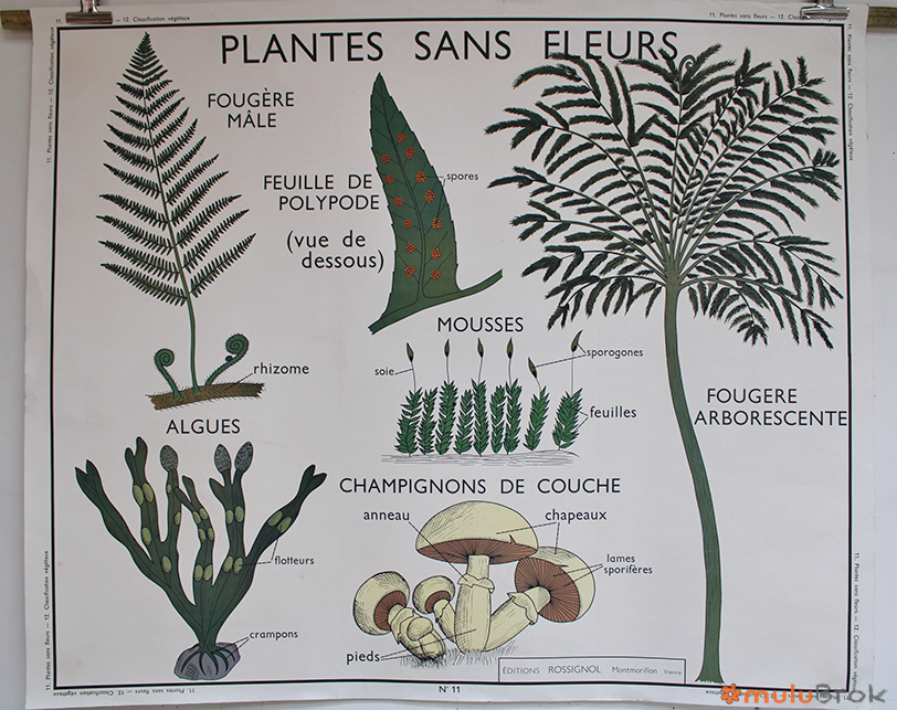 Affiche scolaire Plantes sans Fleurs et Classification des Végétaux.