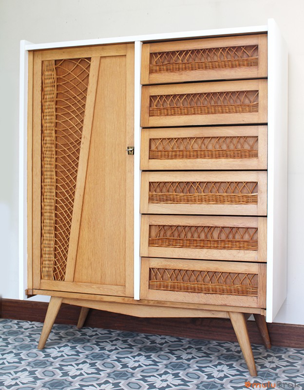 Meuble Vintage, Penderie Chiffonnier, bois et rotin ! …