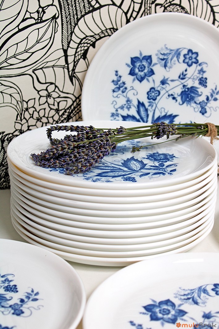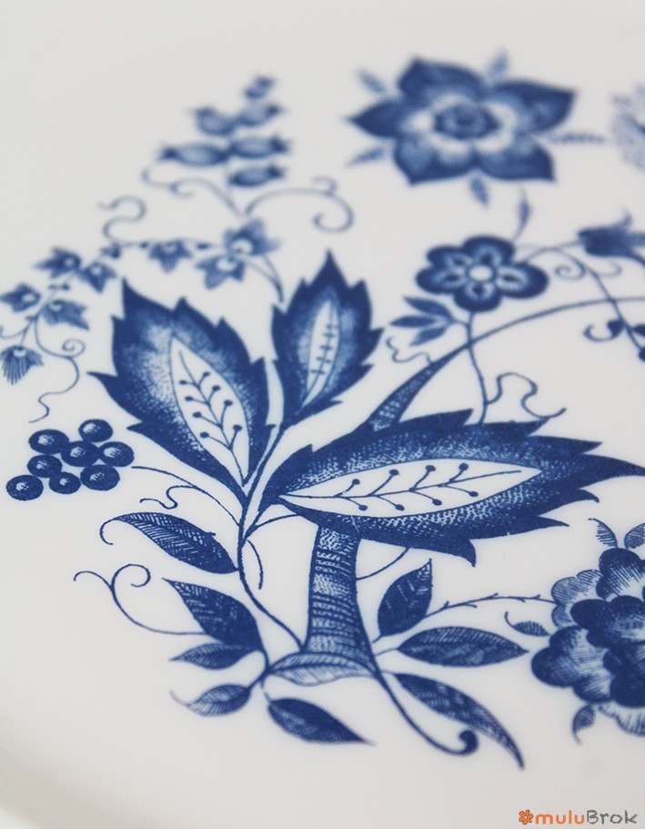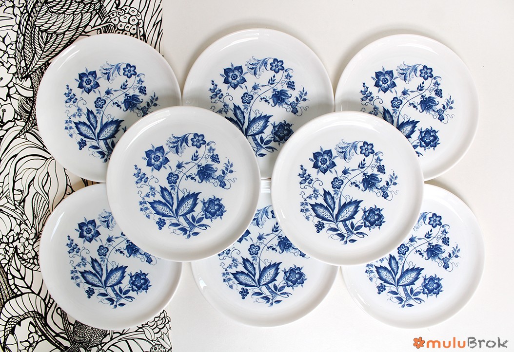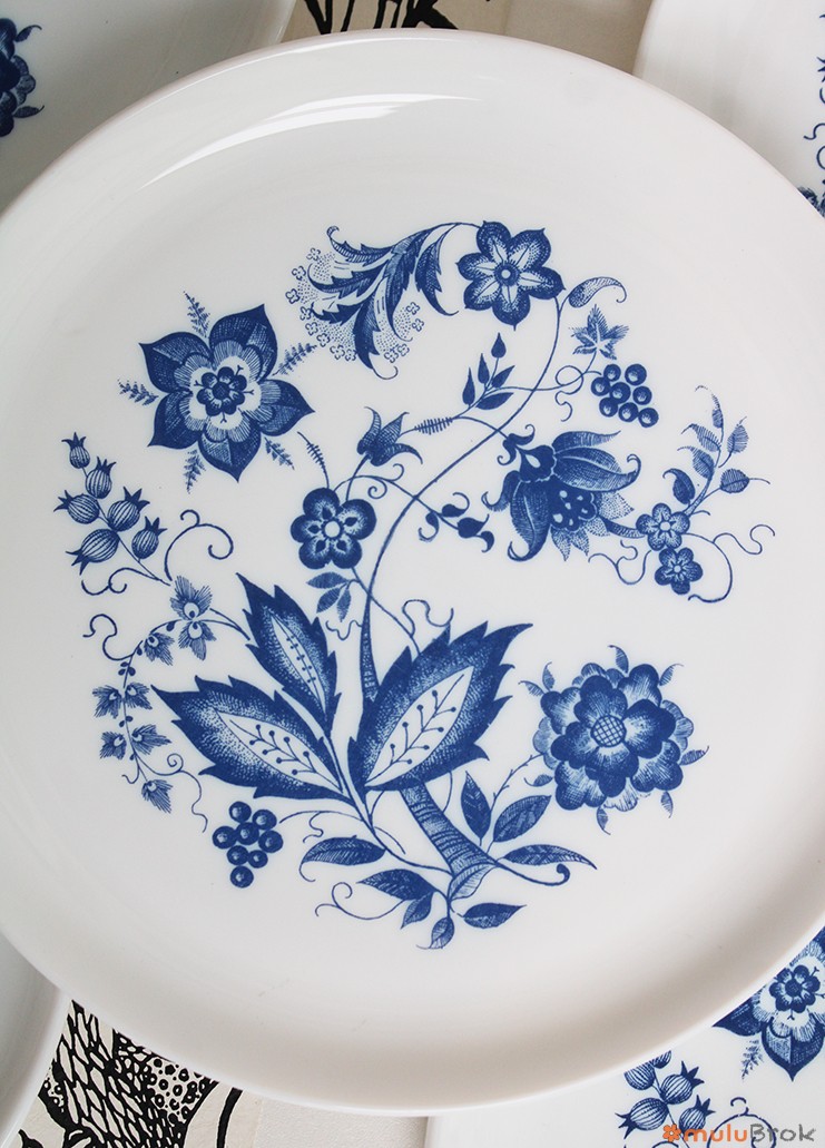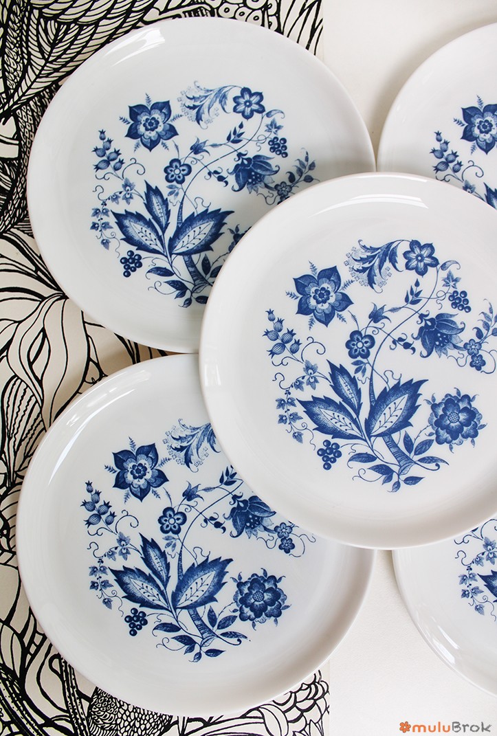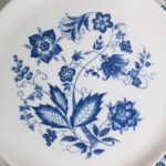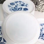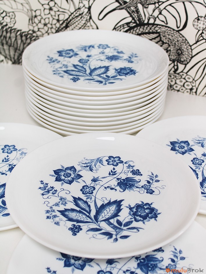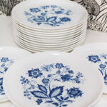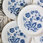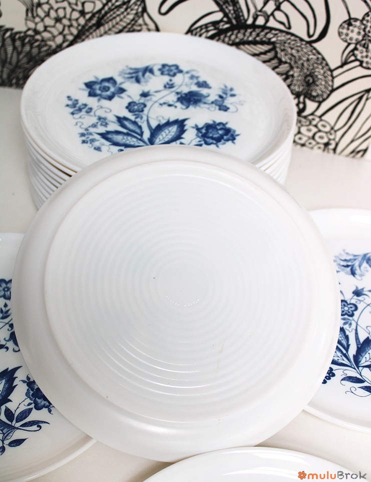 Vaisselle vintage en Arcopal modèle fleurs bleues.