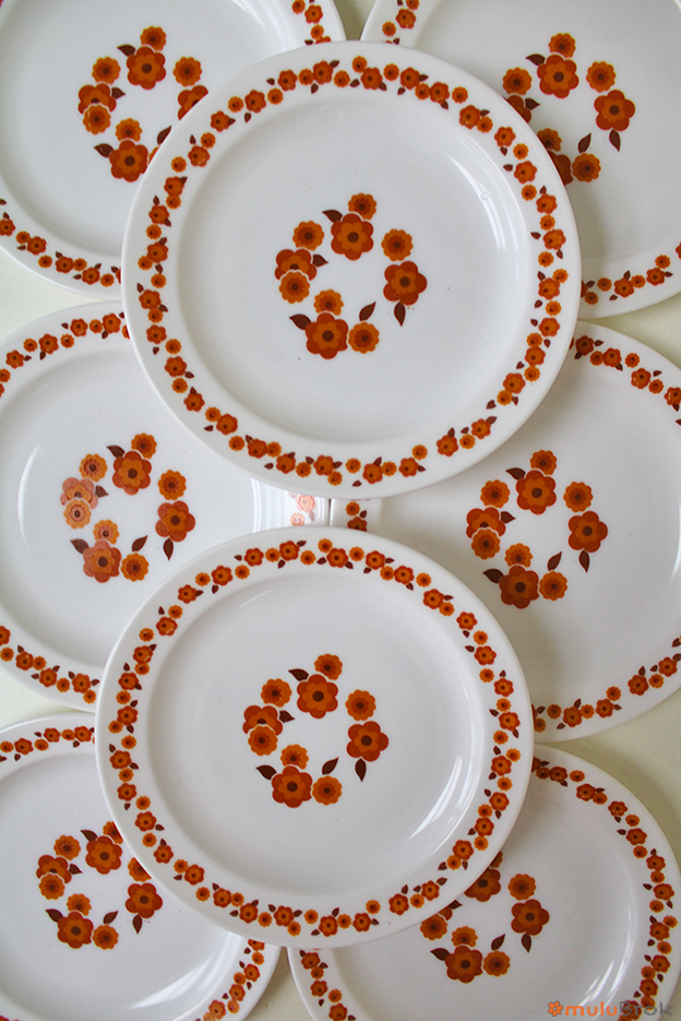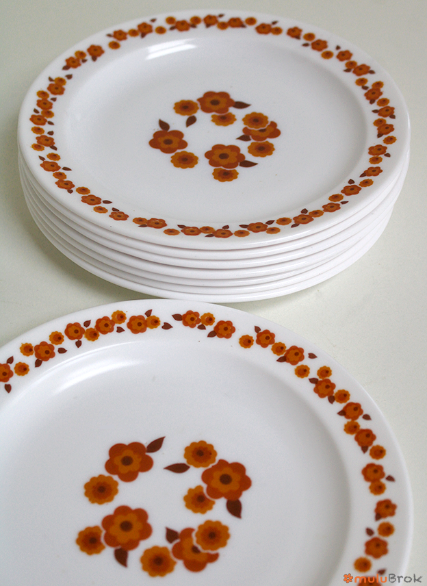 Vaisselle vintage Arcopal, les assiettes à dessert.