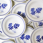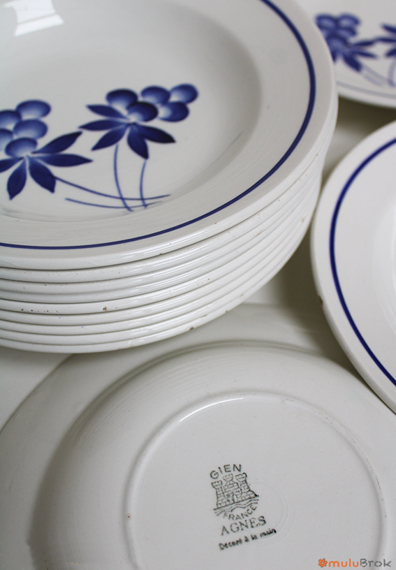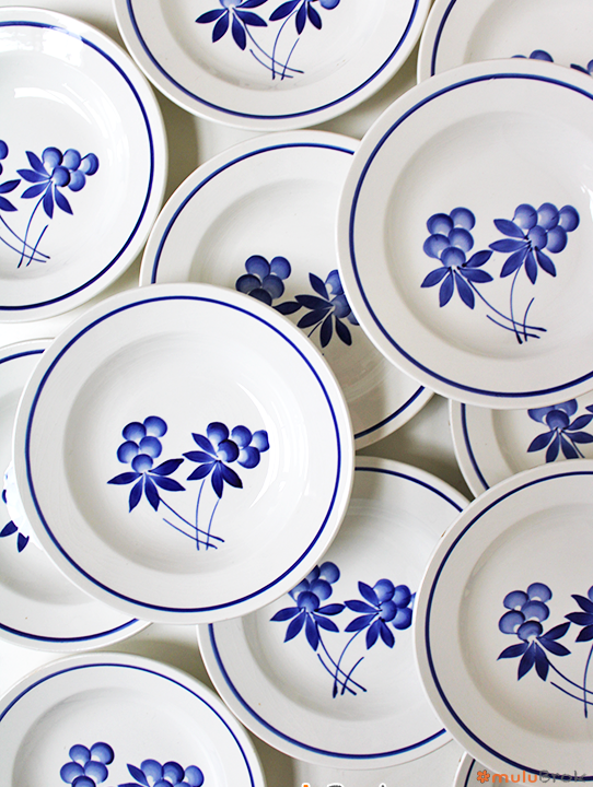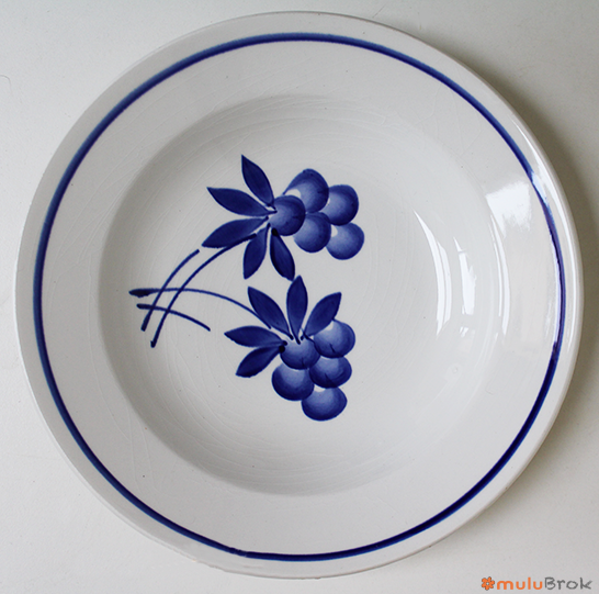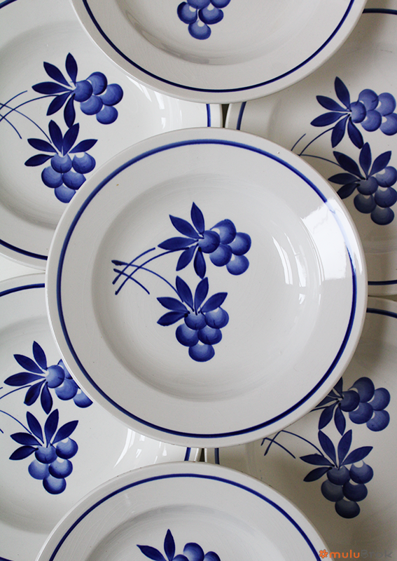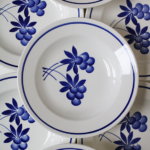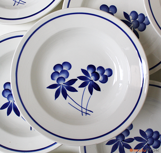 Joli motif : Fleurs à grappes, liseret sur le contour. Bleu foncé.