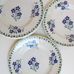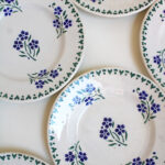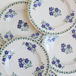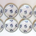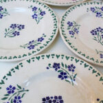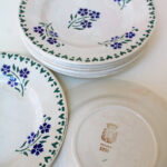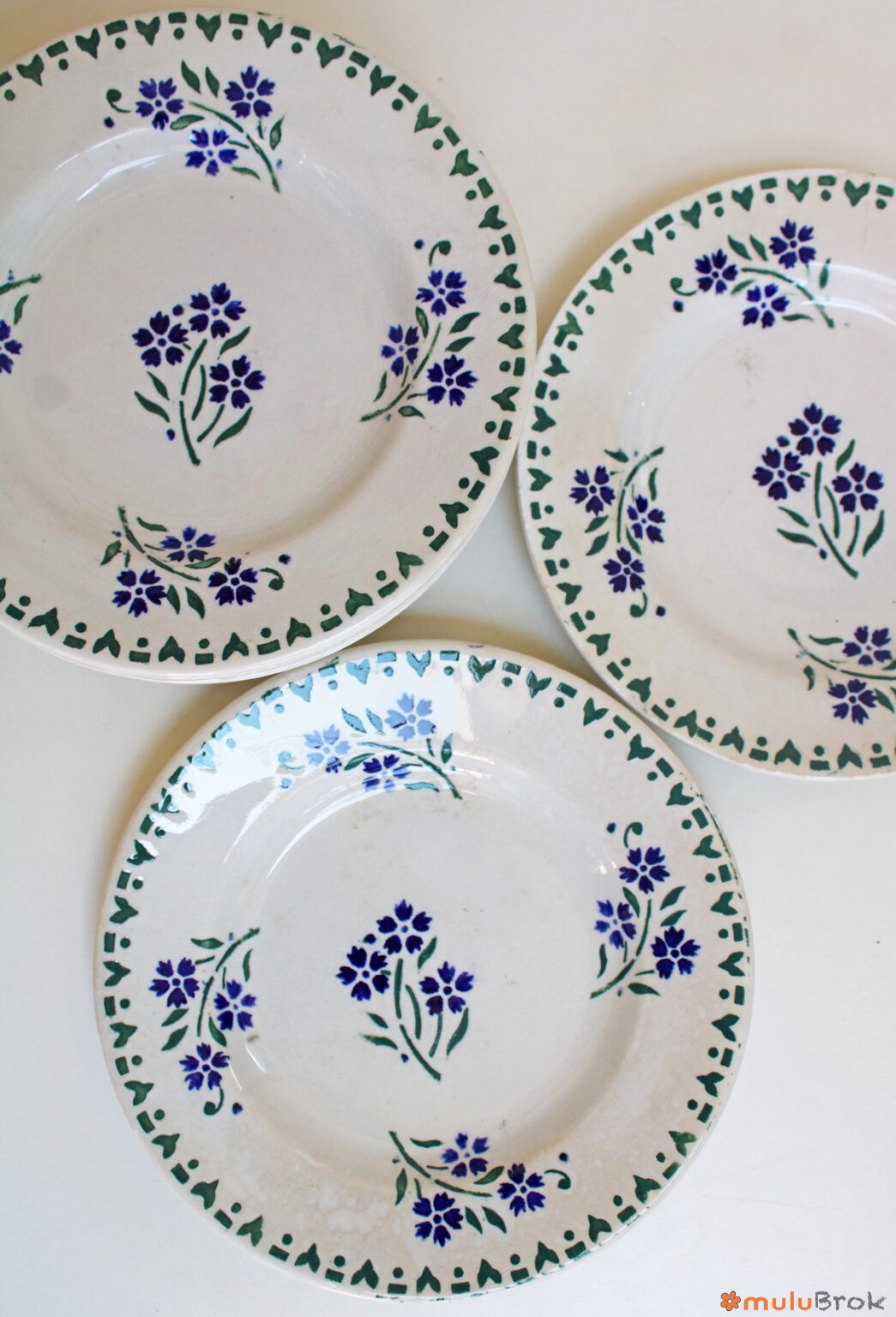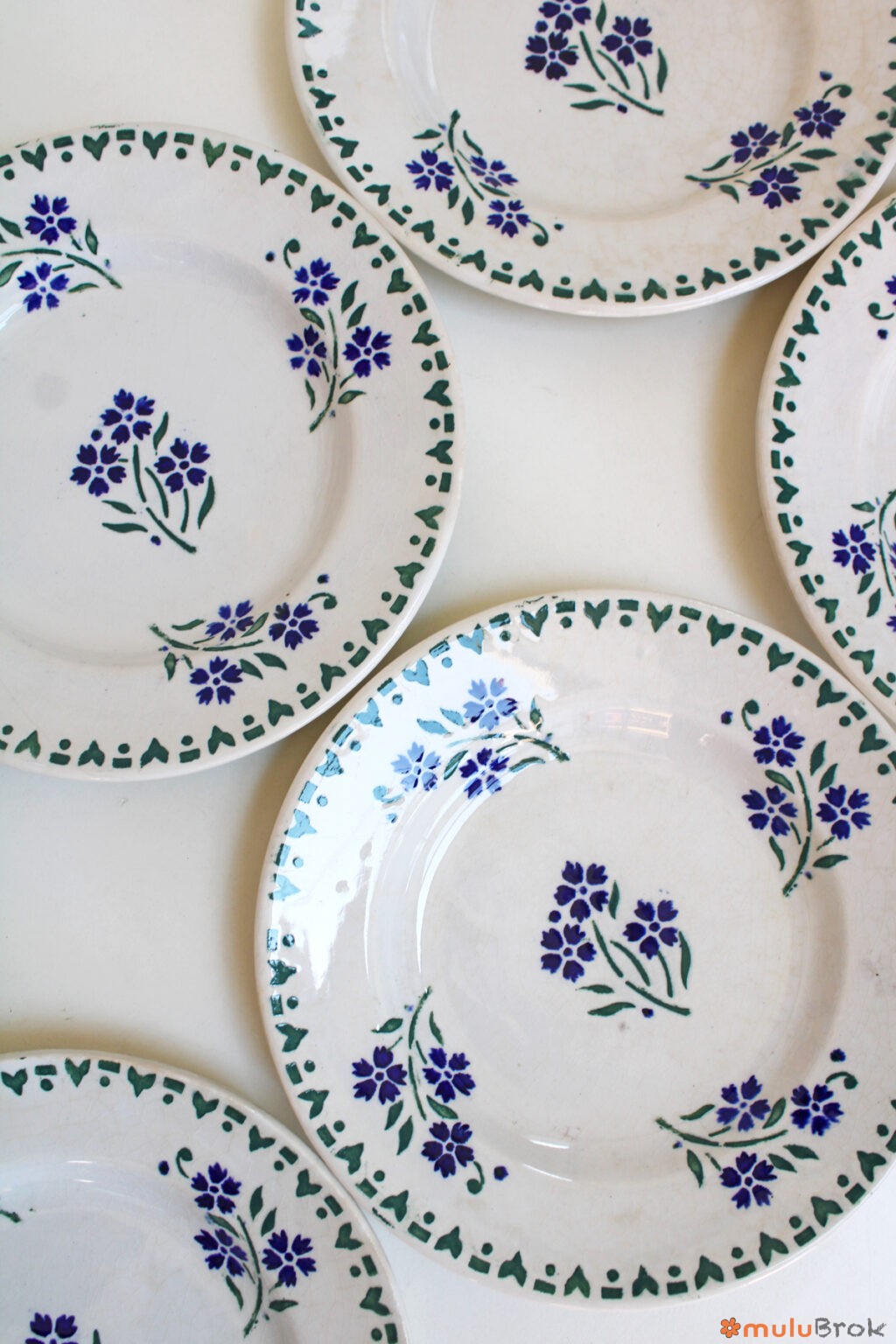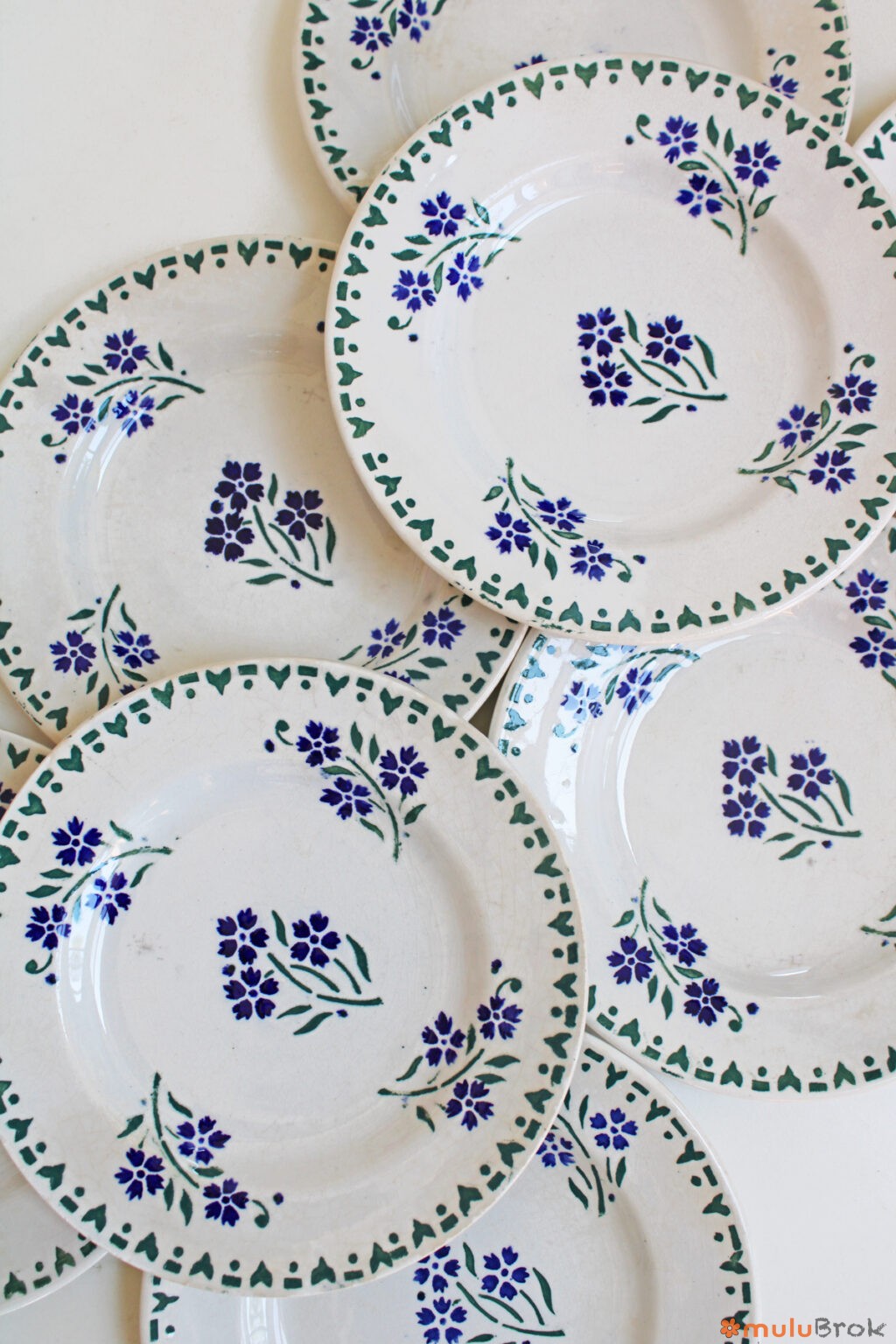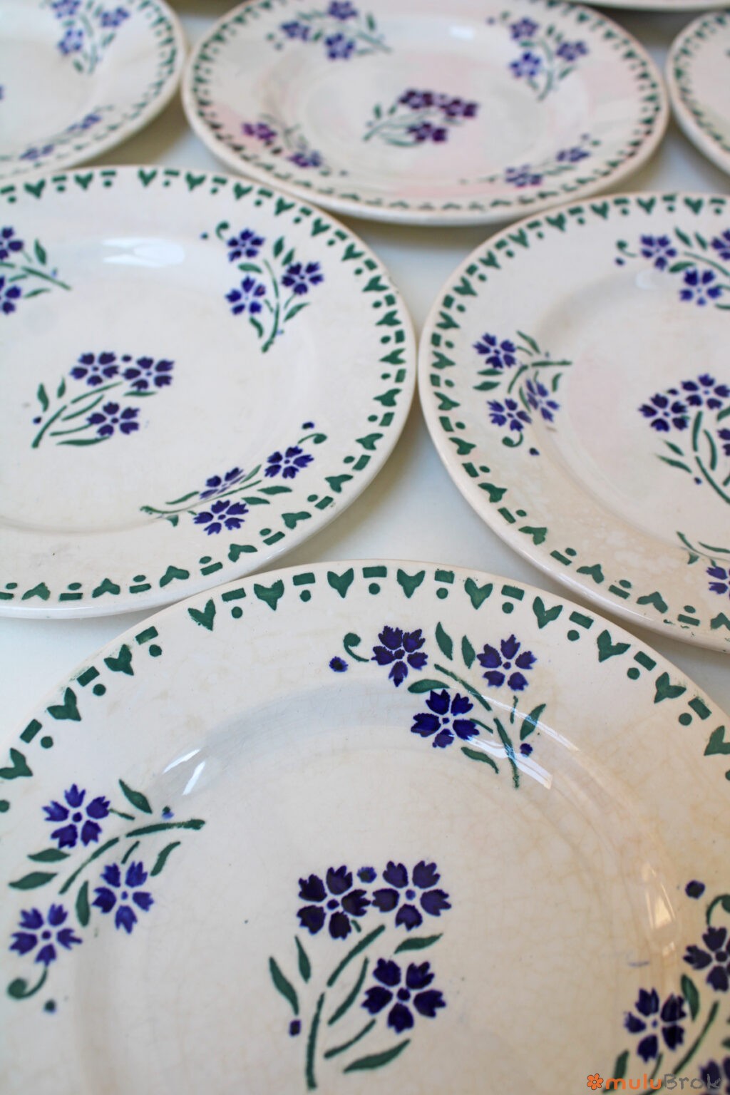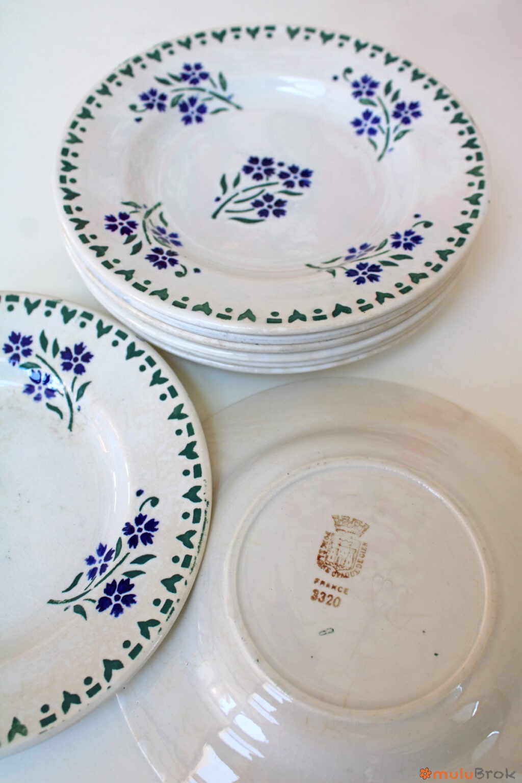 Anciennes assiettes à dessert en Porcelaine Opaque de Gien.