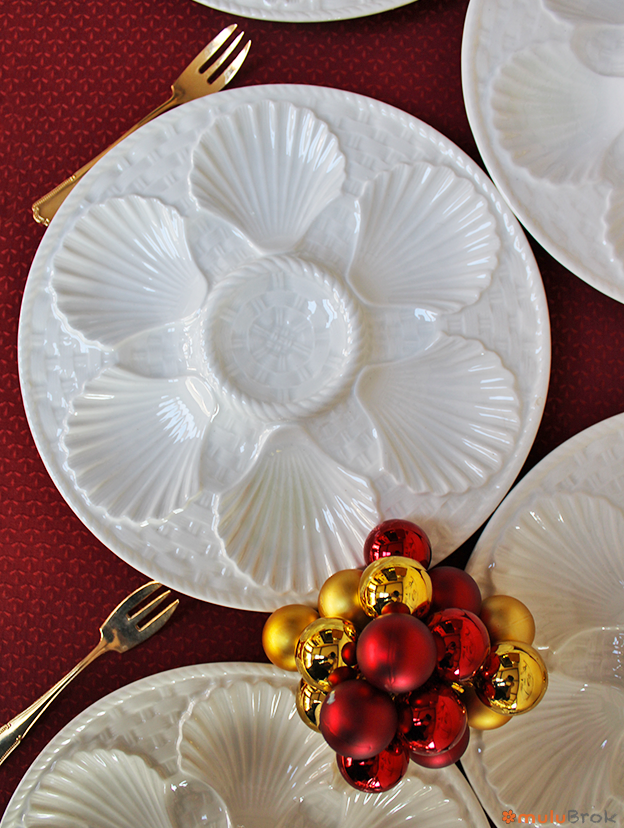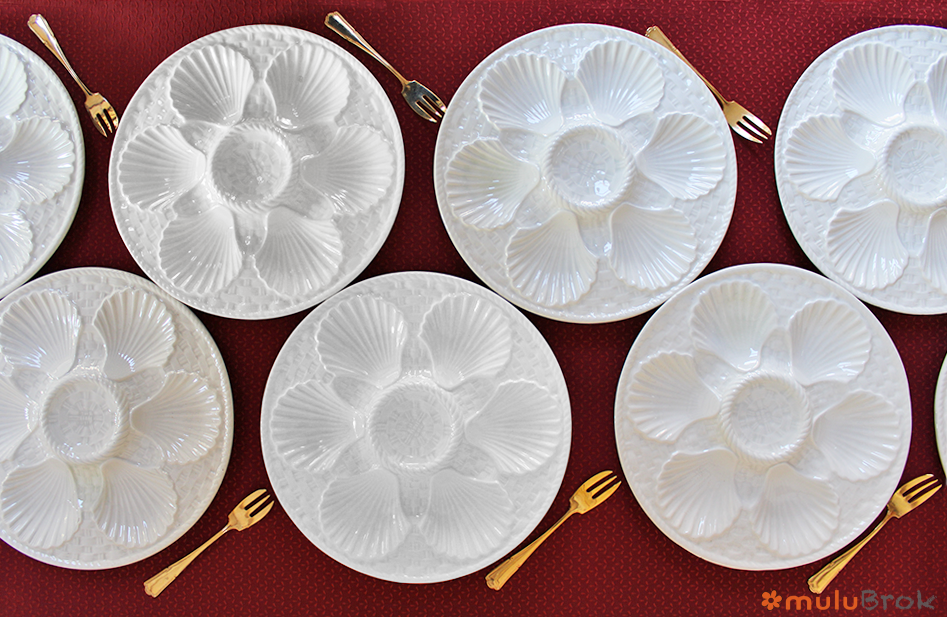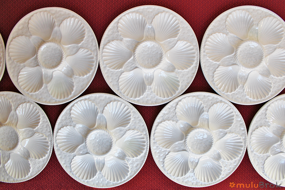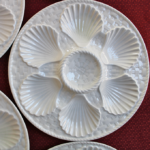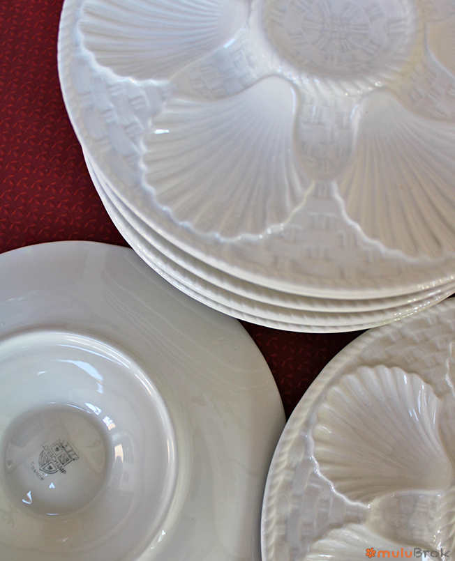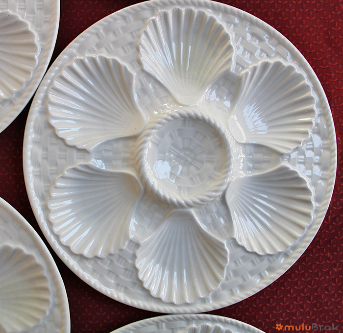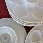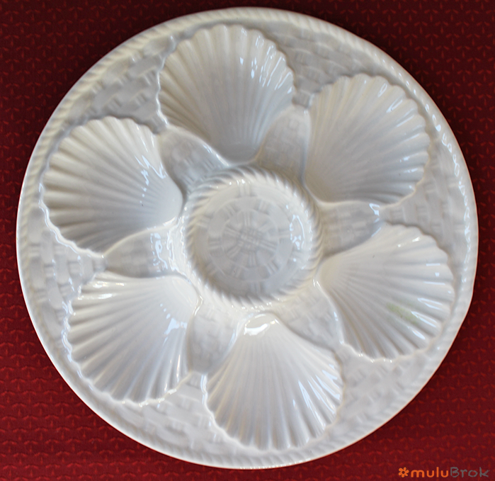 Vaisselle ancienne, assiette à compartiments pour les huîtres et coquillages.