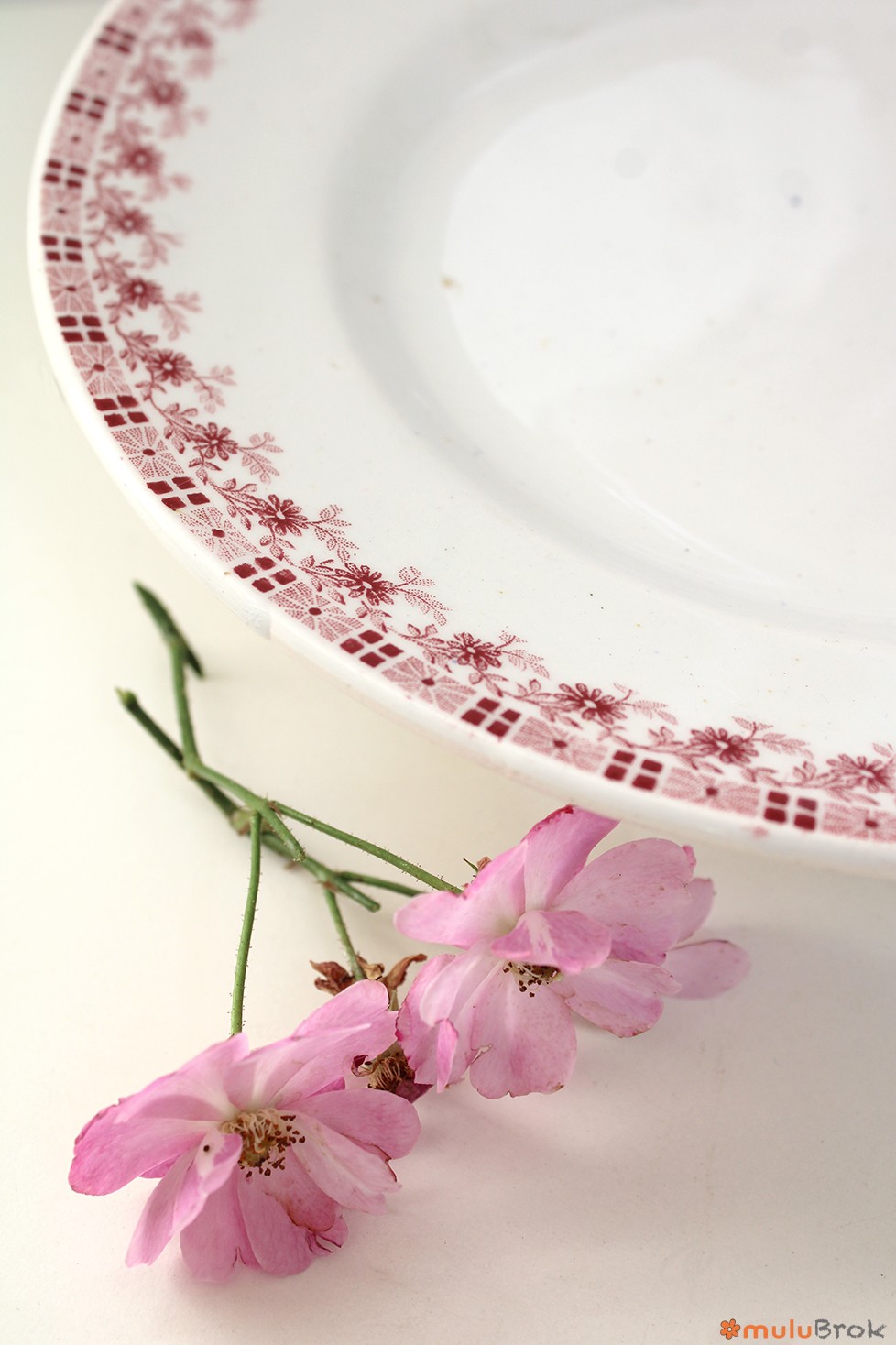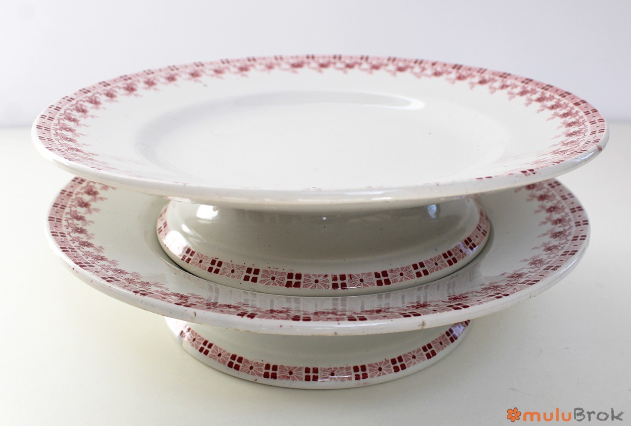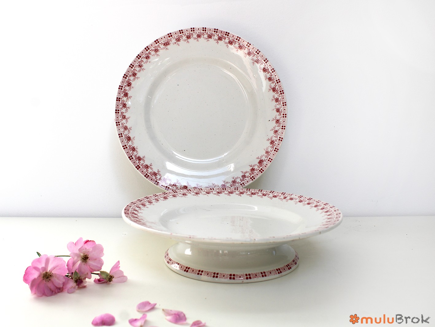 Vaisselle ancienne, assiette sur piedouche en faïence.
