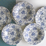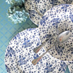 Décor : Fleurs et feuillage bleus sur fond blanc
