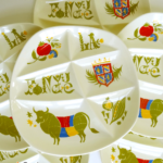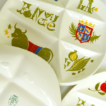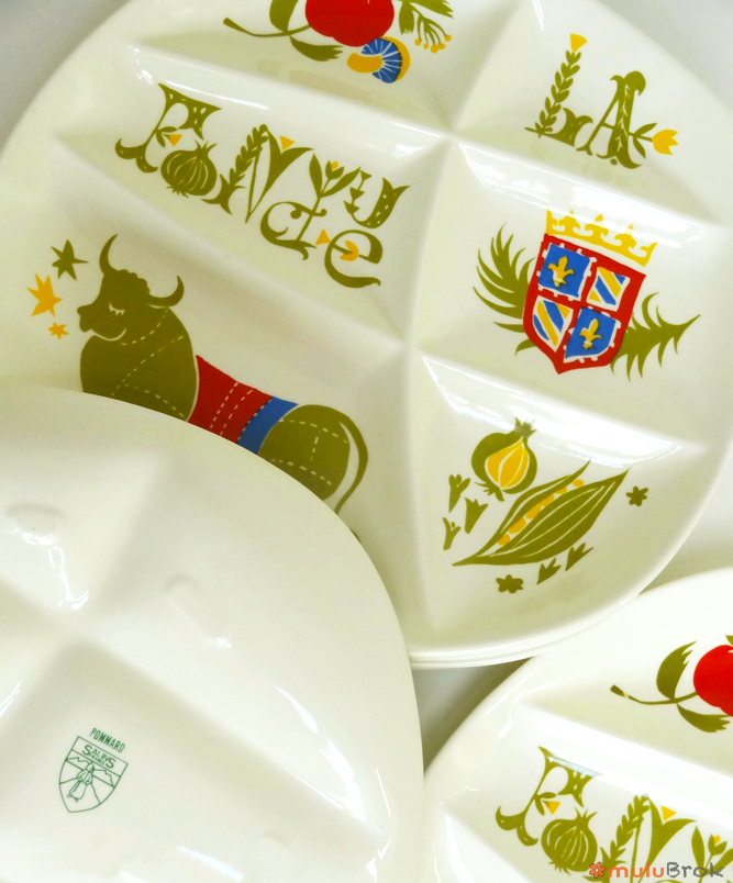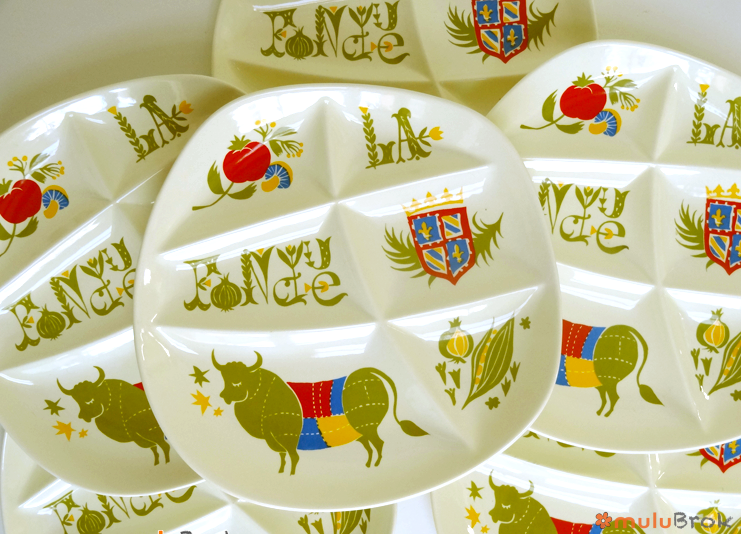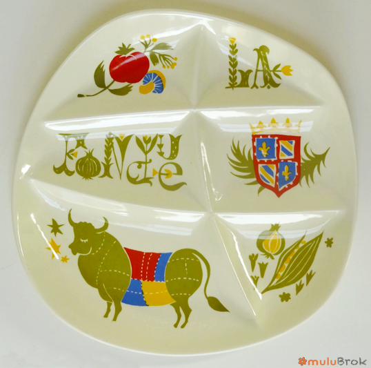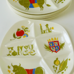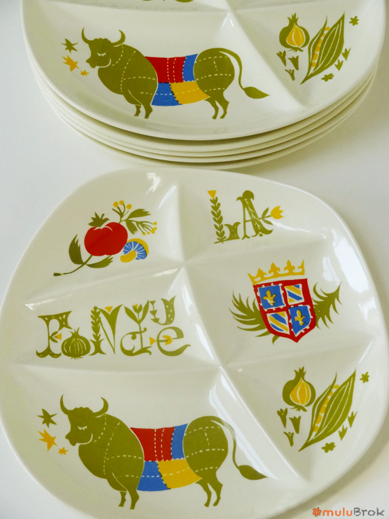 Vaisselle ancienne, assiette à fondue en faïence Salins.