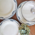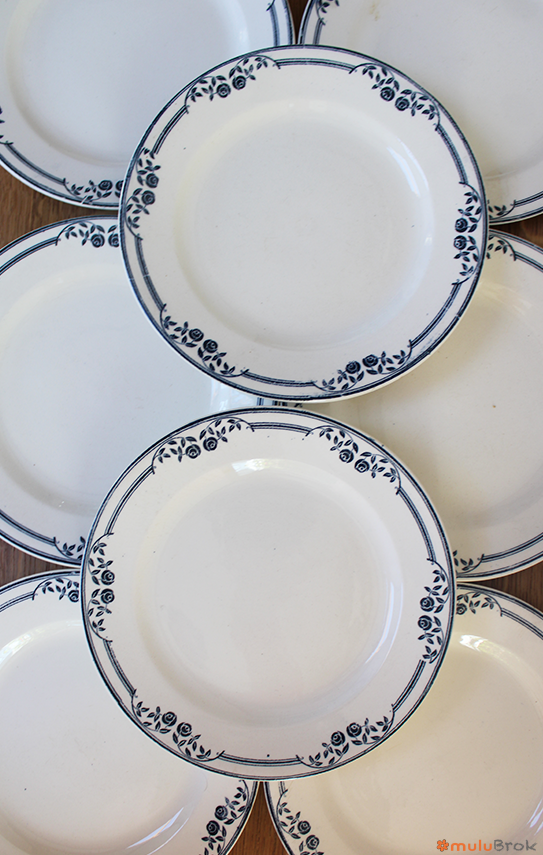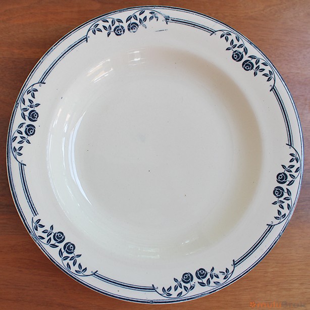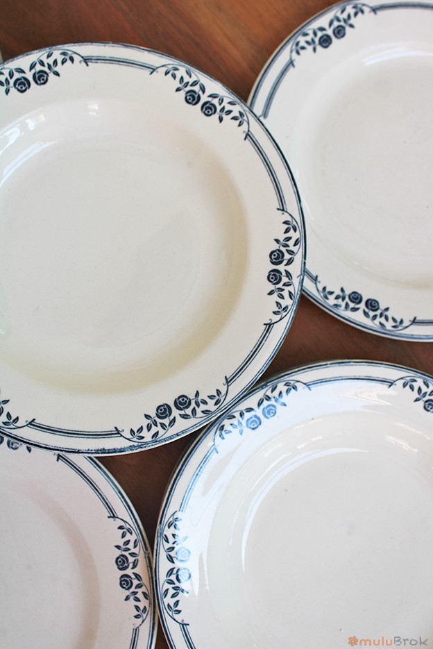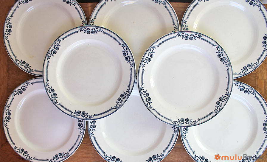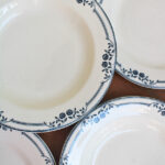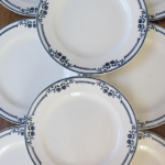 Motif : Fleurs bleues sur le contour de l’assiette.