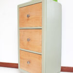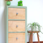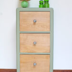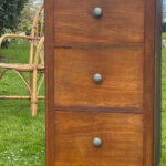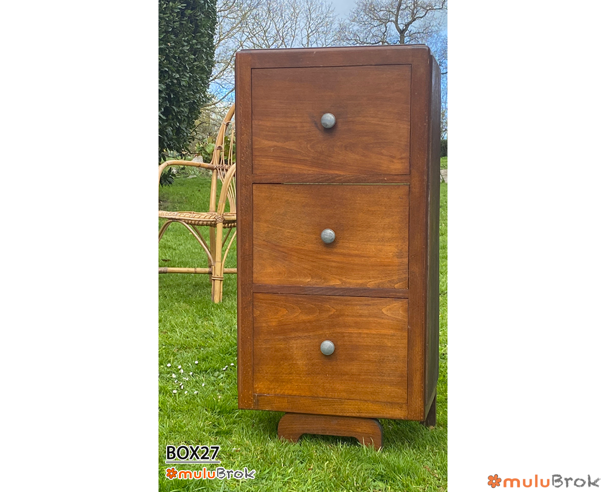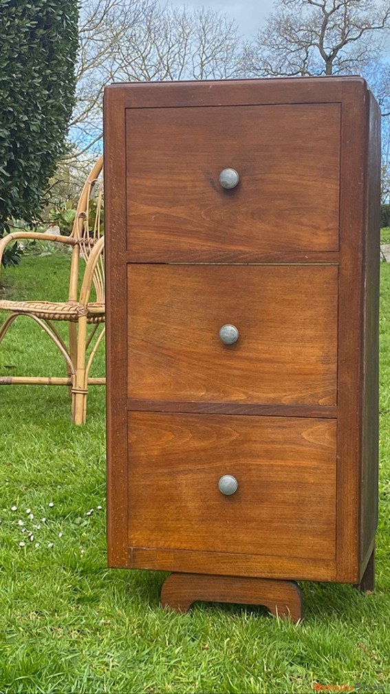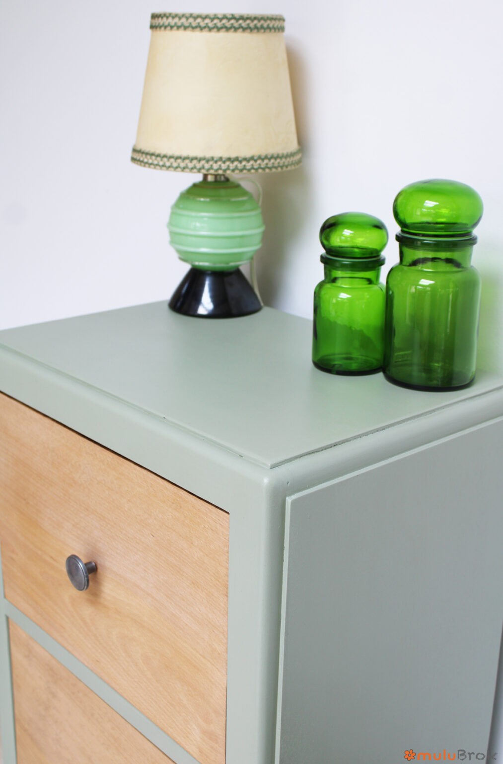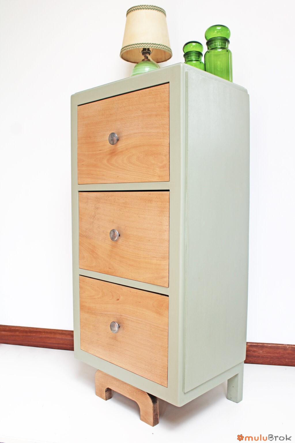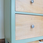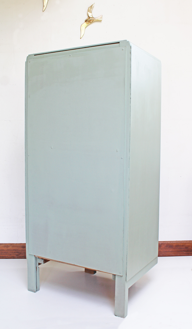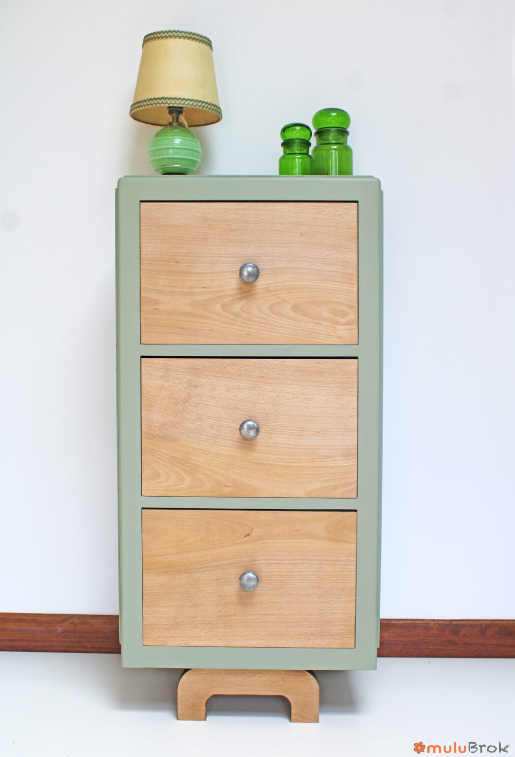 Le fond intérieur des tiroirs est décoré d’un papier peint vintage.