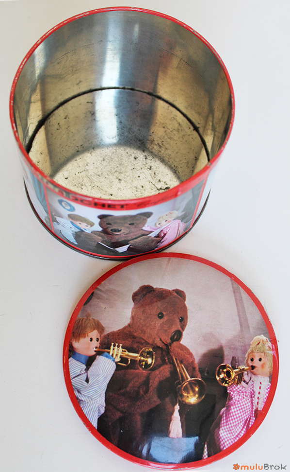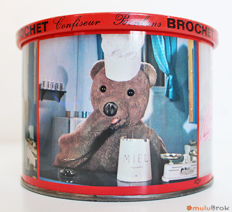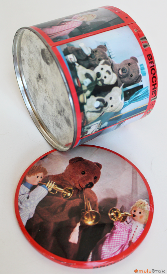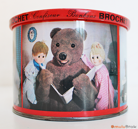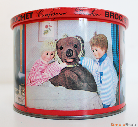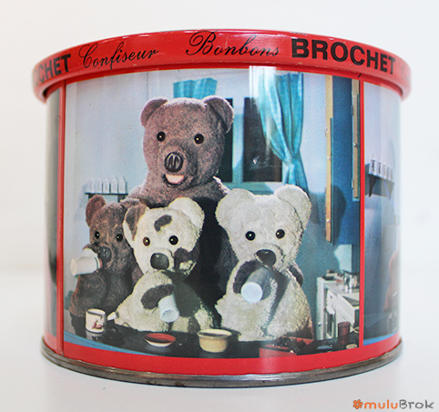 Ancienne boite à bonbons sérigraphiée Nounours Nicolas et Pimprenelle (ORTF).