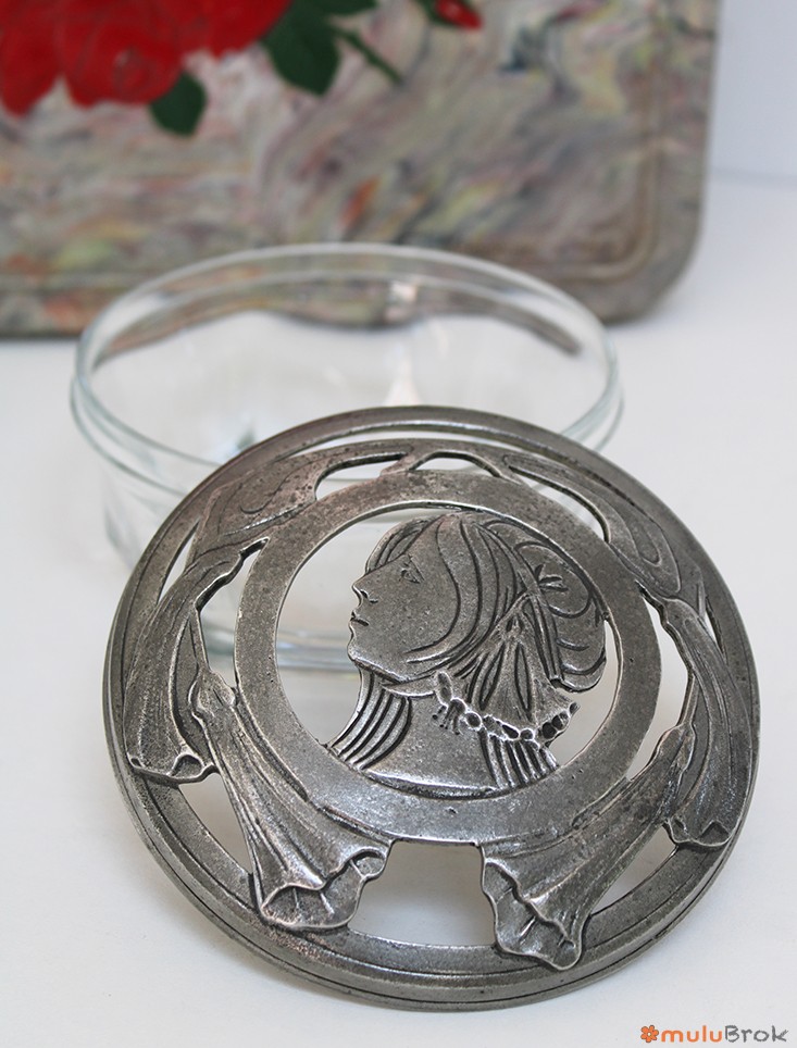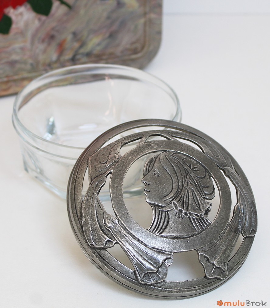 Couvercle en étain 95% avec un joli visage rétro.