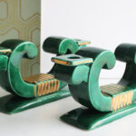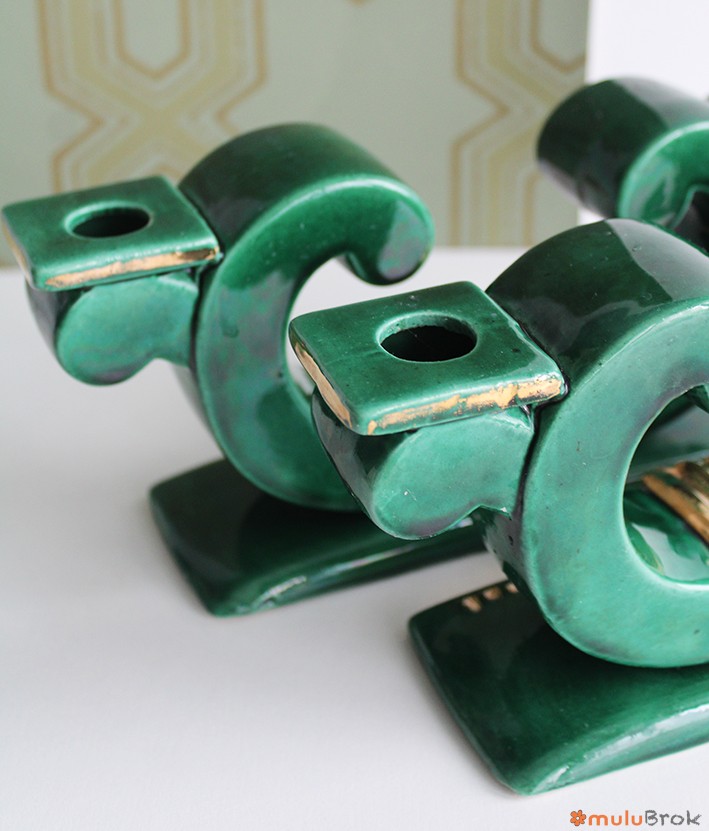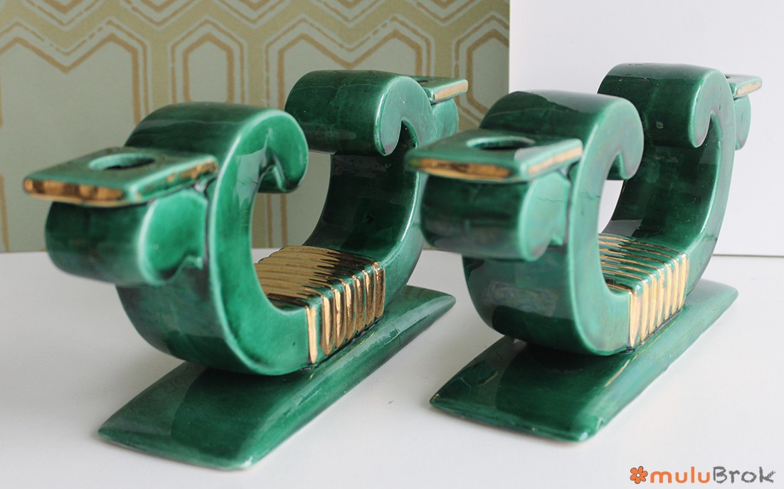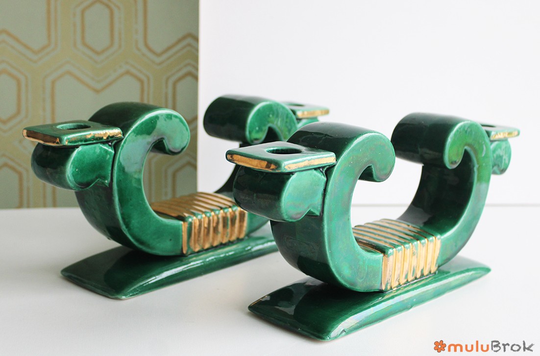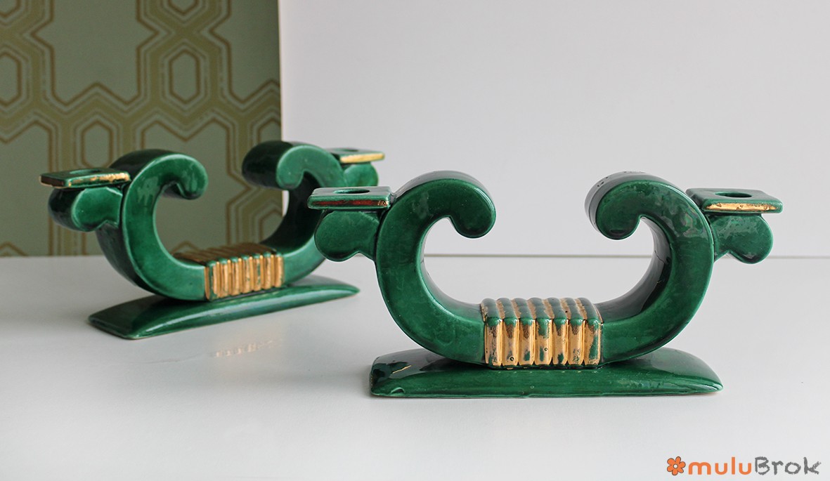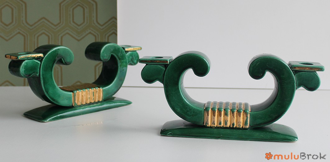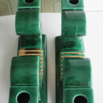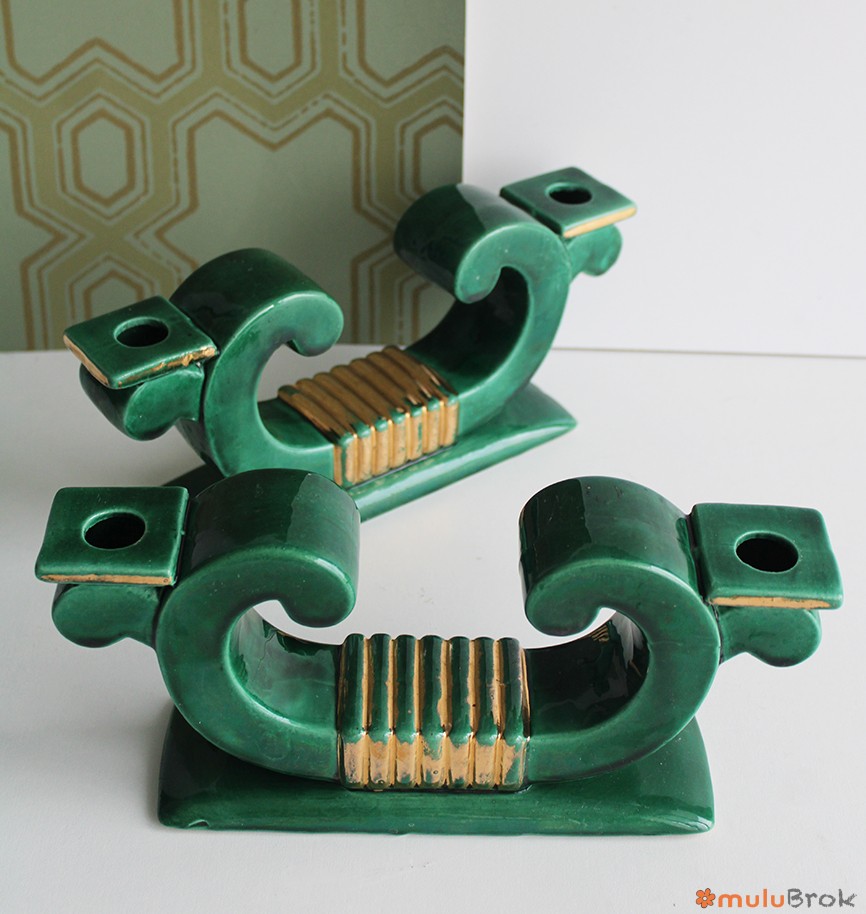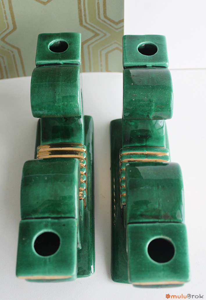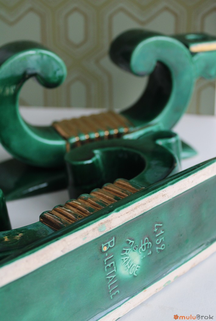 Originaux et charmants, pieds de lampe Saint Clément aux tons vert et or…