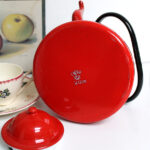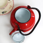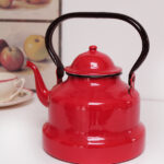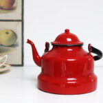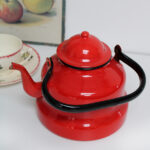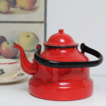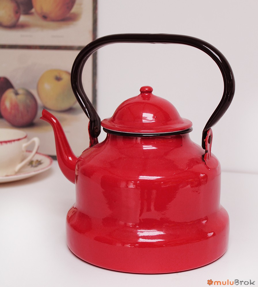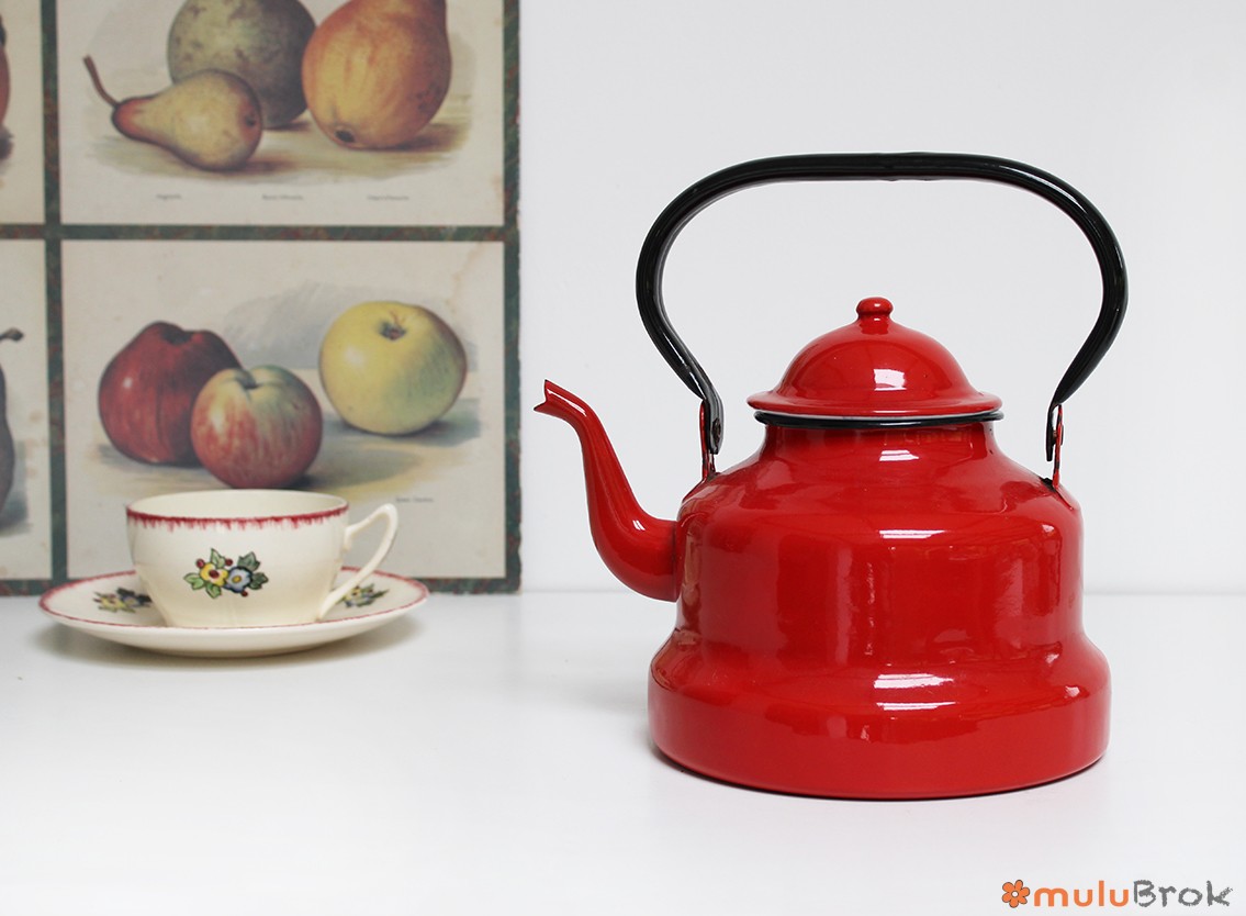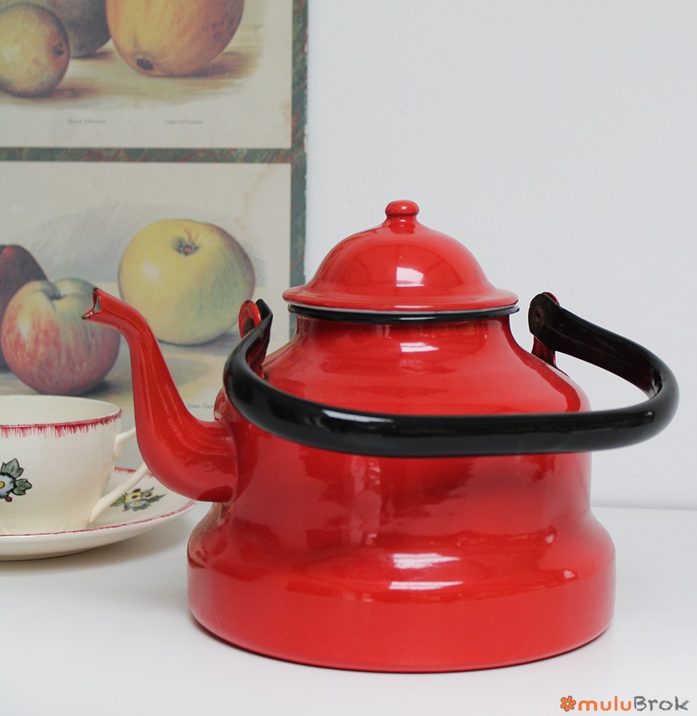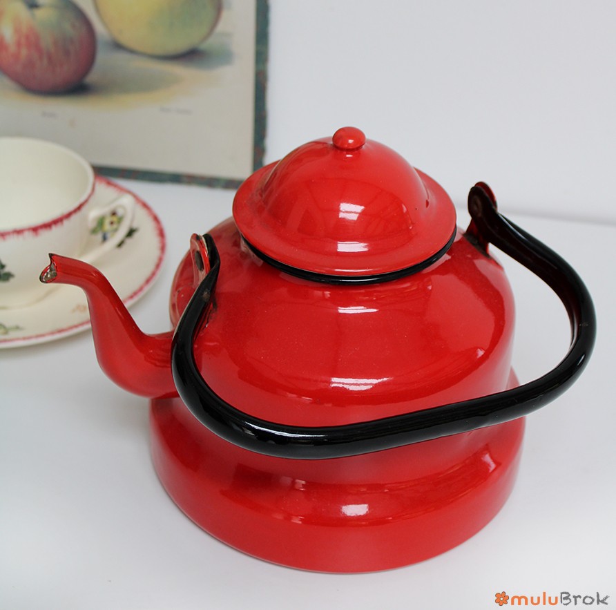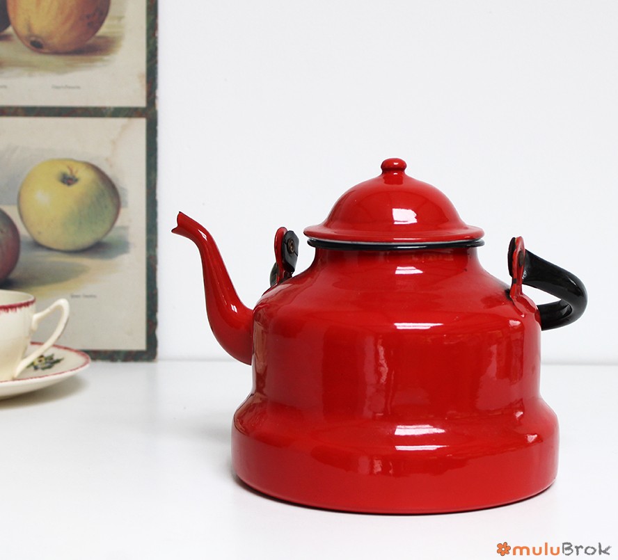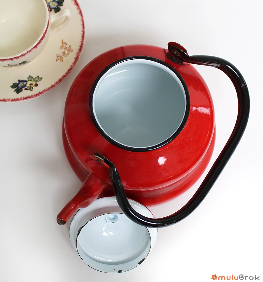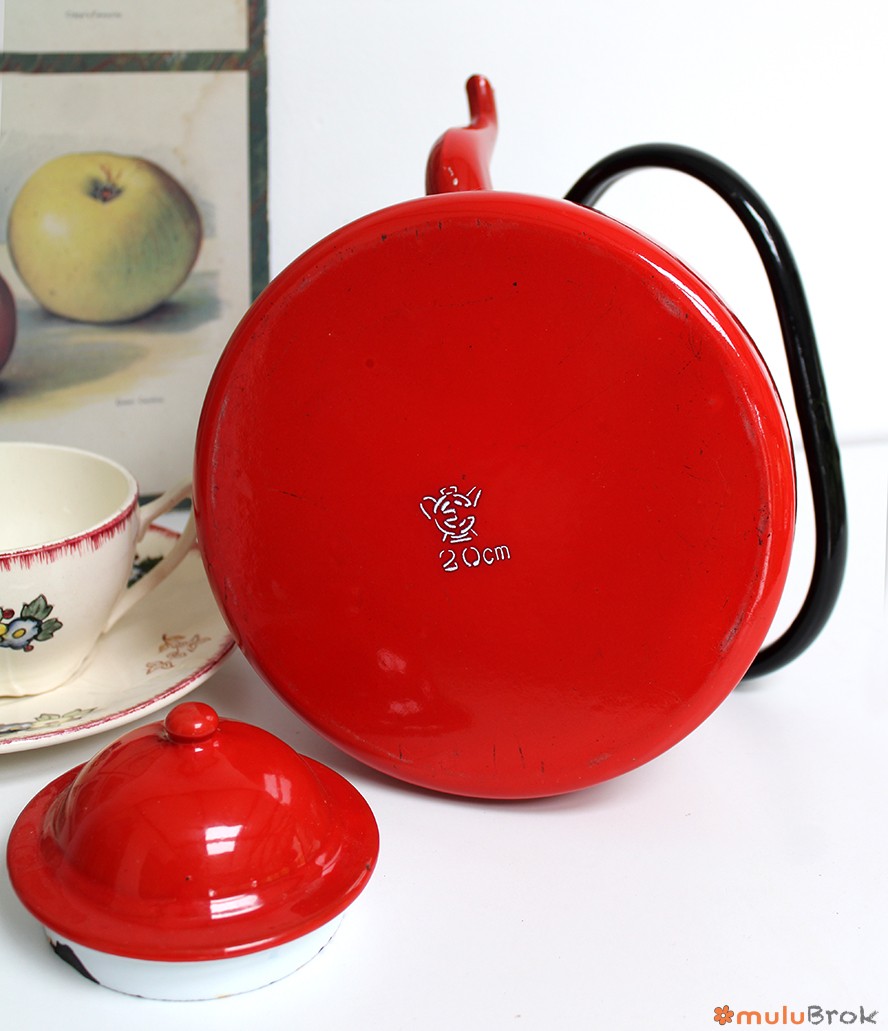 Tôle émaillée, coloris rouge avec un liseret noir.