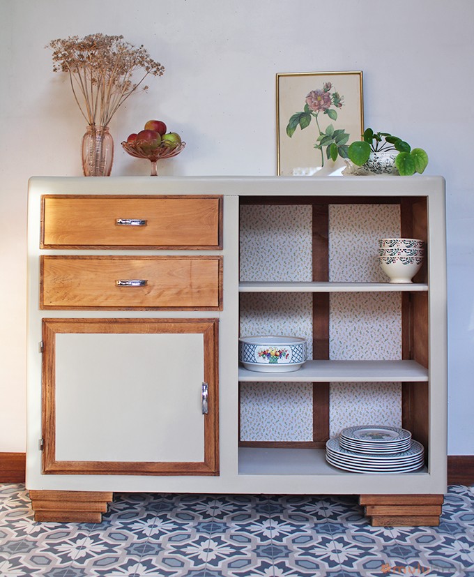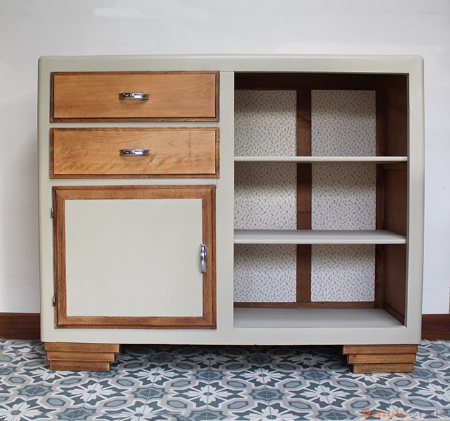 Rénové et revisité en teinte chanvre et bois. Finition patinée (Produits Libéron).