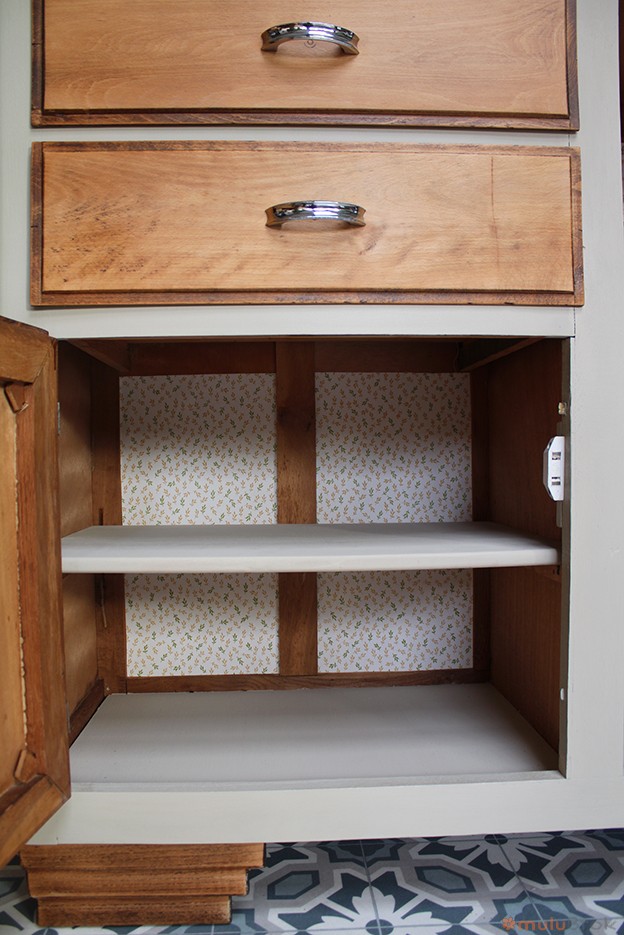 La porte de droite a été retirée laissant apparaitre les 2 étagères.