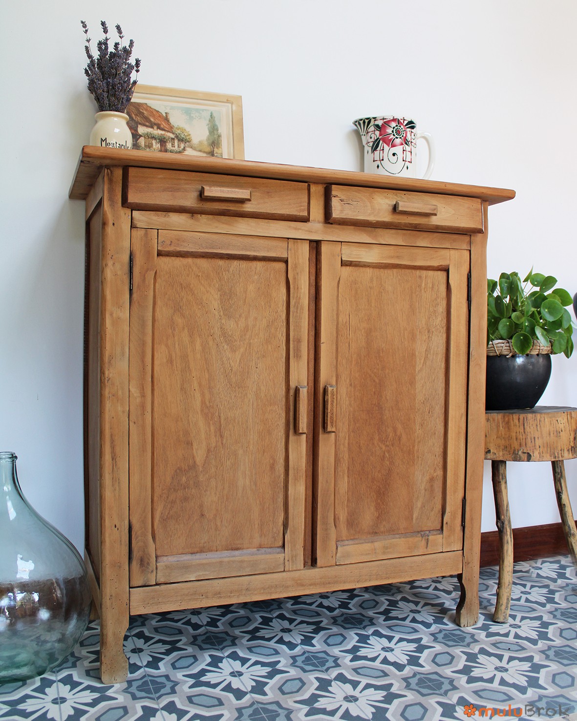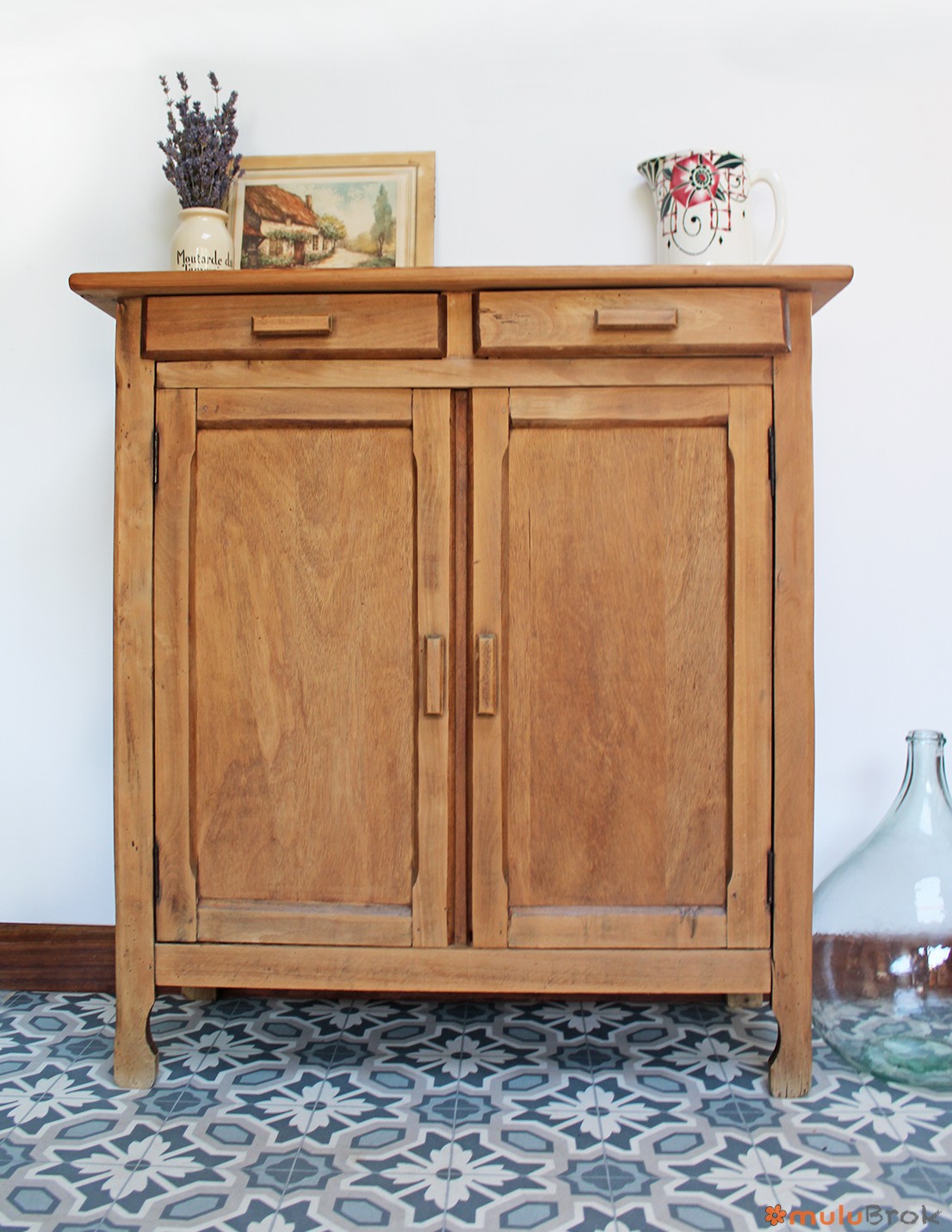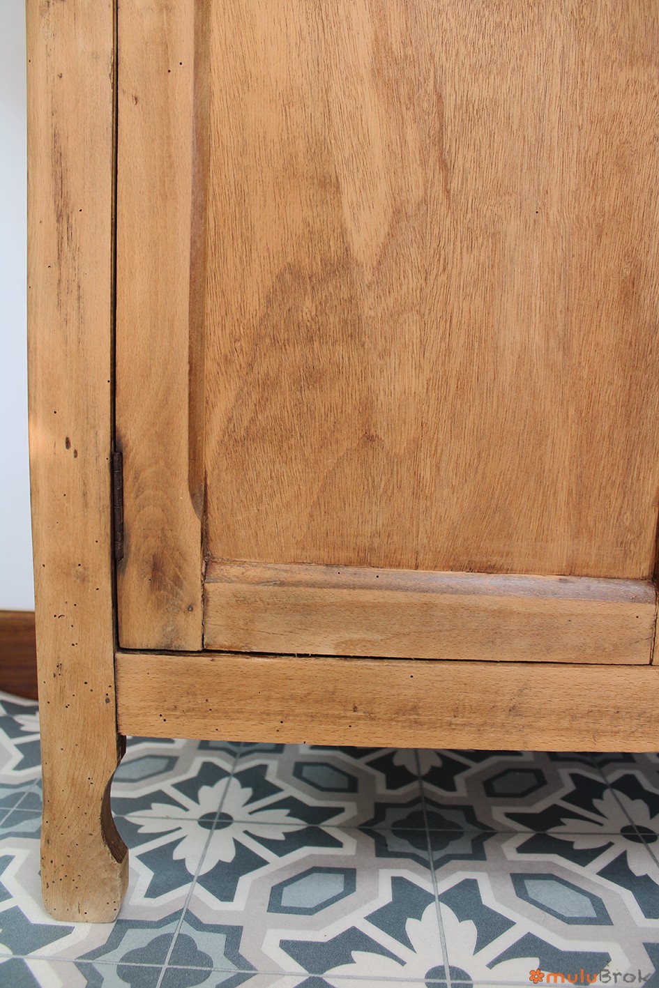 Bois traité, meuble rénové, le bois est teinté chêne clair,