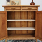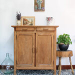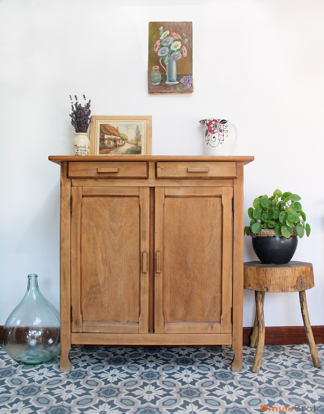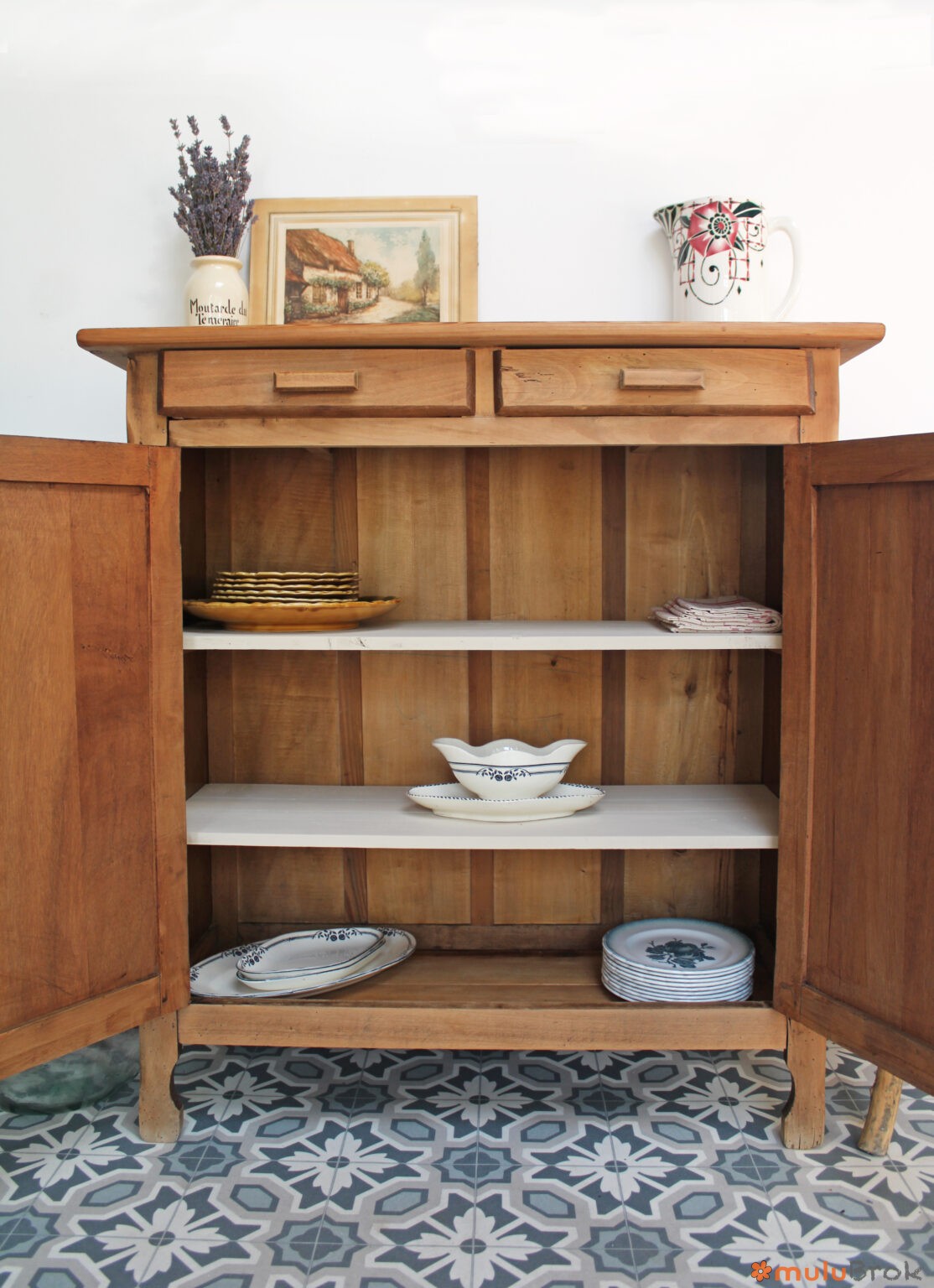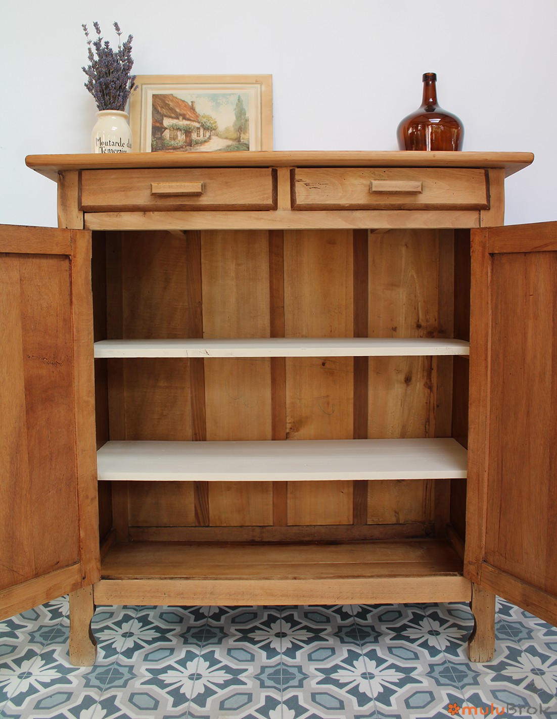 Bois traité, meuble rénové, le bois est teinté chêne clair,