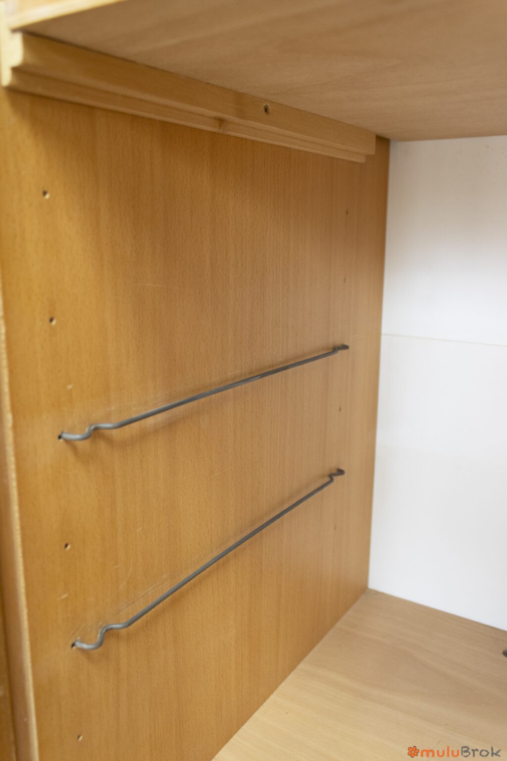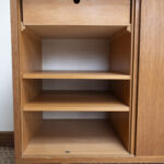 Côté gauche : 1 tiroir + 2 étagères coulissantes.